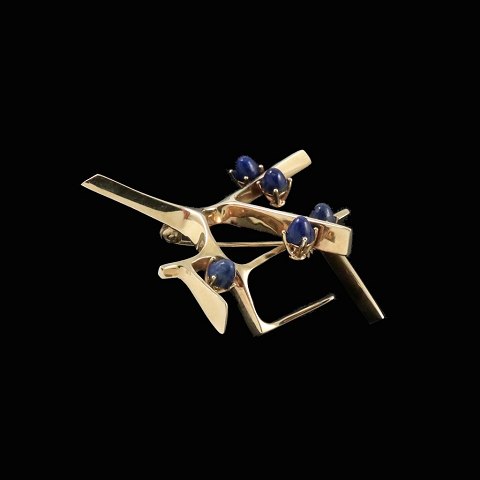 Ole Lynggaard. Brochei 14k guld med Lapis Lazuli.