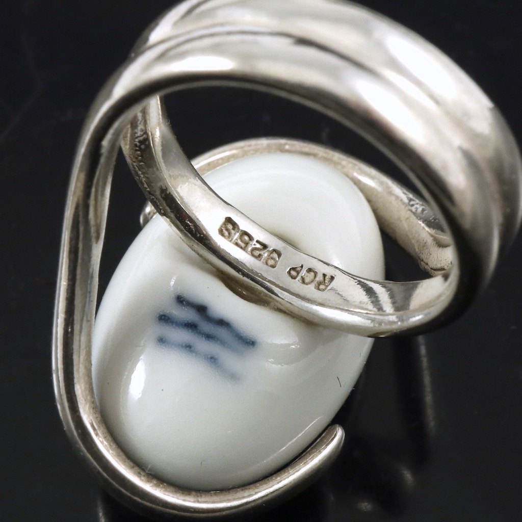 Royal Copenhagen. Sterling Silver Ring with Porcelain.