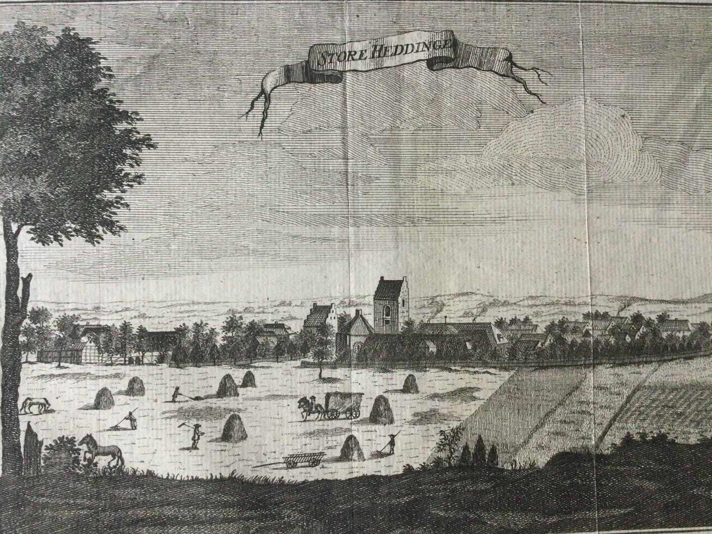Gammelt kobberstik af Erik Pontoppidan - Store Heddinge 1764 - fra Danske Atlas.