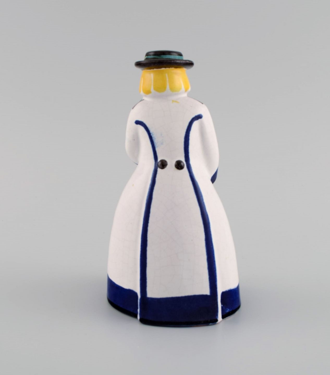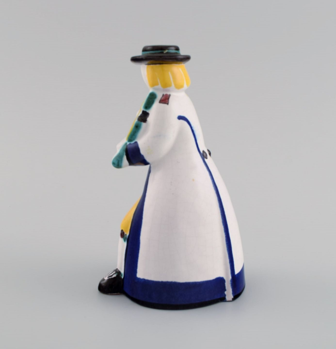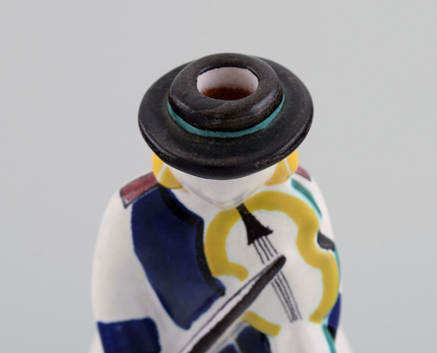 Ursula Printz (1920-1993) for Gustavsberg Studiohand. Lysestage / figur i glaseret keramik. Spillemand. Midt 1900-tallet.