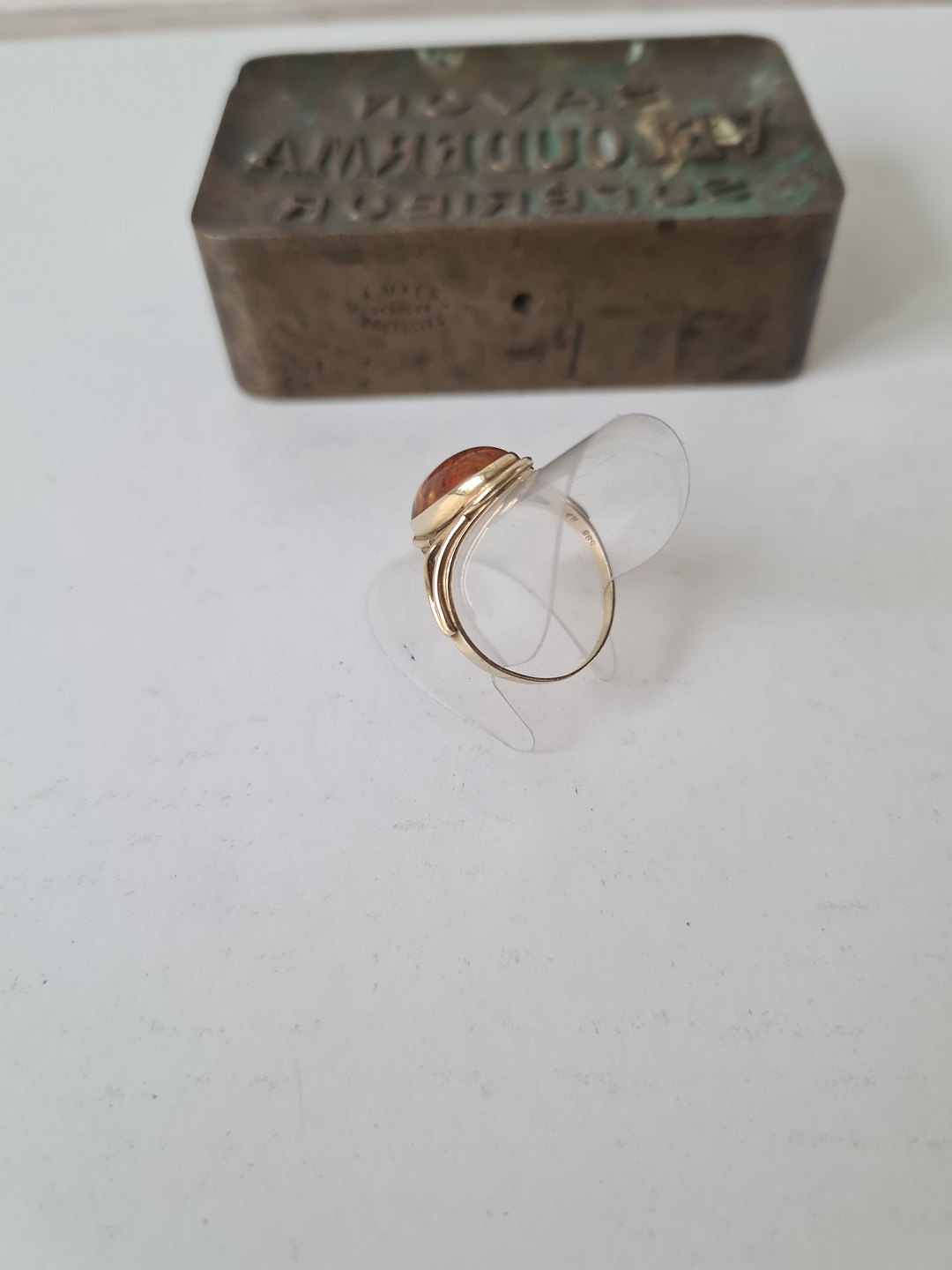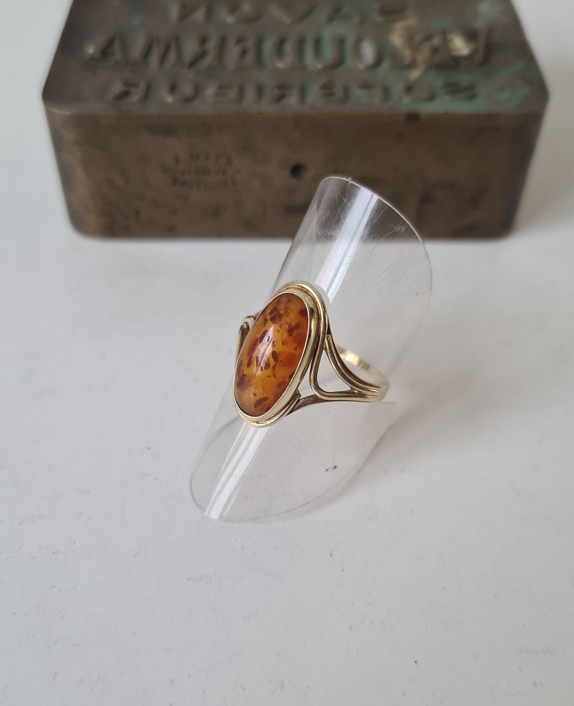 Vintage ring i 14 kt guld med cabochon slebet rav stykke
