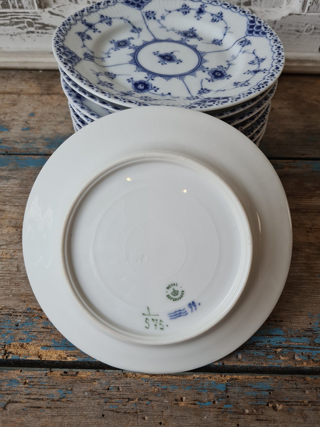 Royal Copenhagen Musselmalet halvblonde kagetallerken no. 575 - 15,5 cm. 1898-1923 |