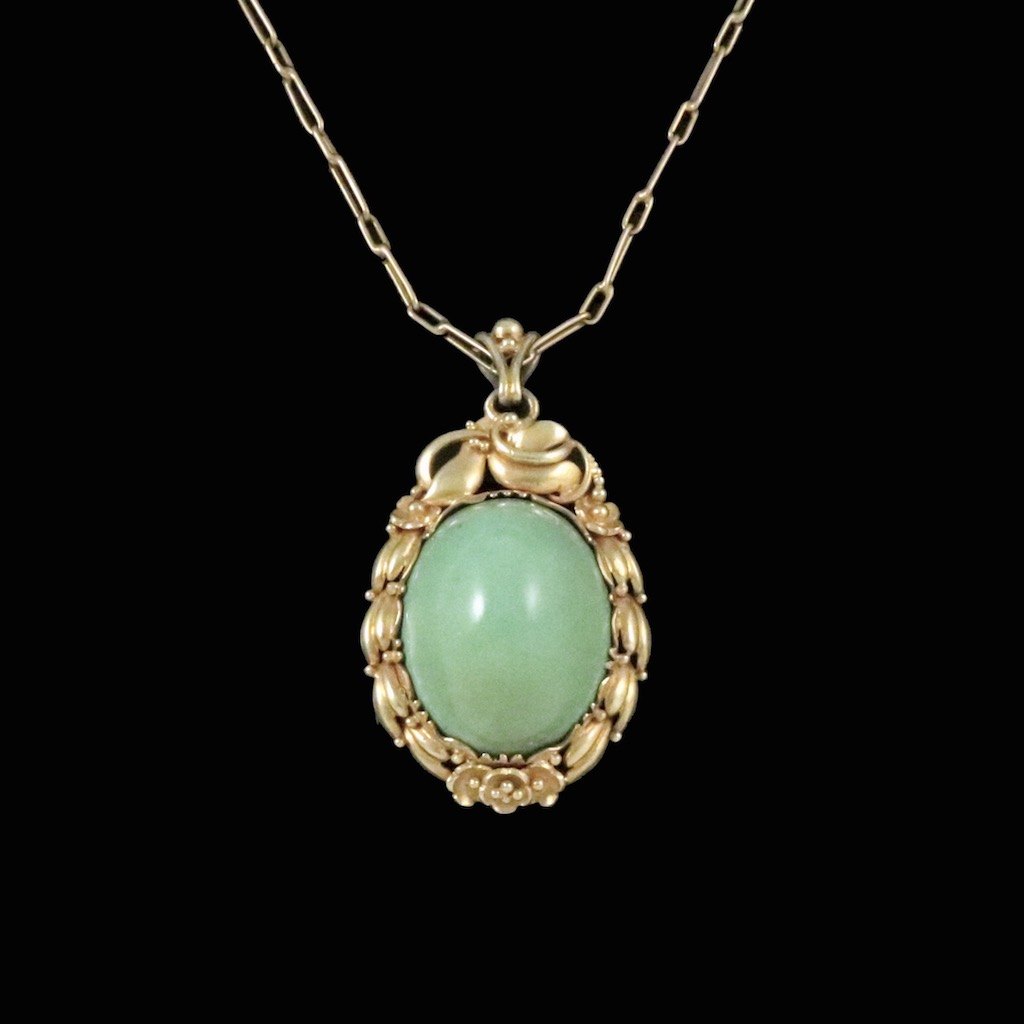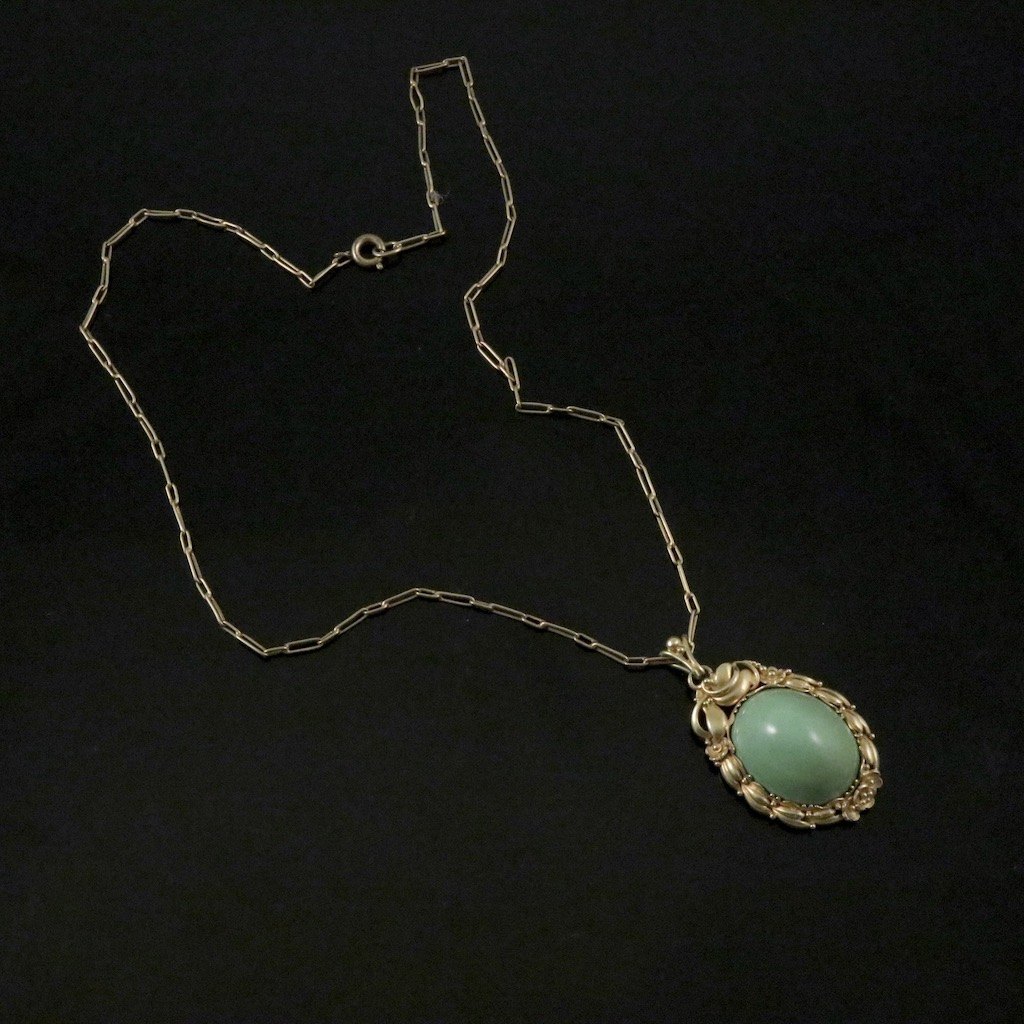 G.A. Baentsch. Halssmykke i 14k guld med turkis.