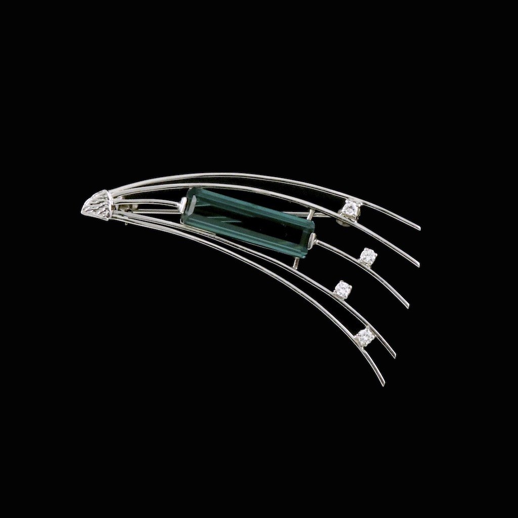 Broche i 14k hvidguld med Tourmalin og diamanter. Total 0.12ct.