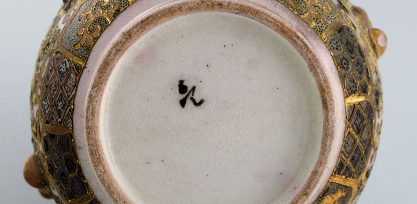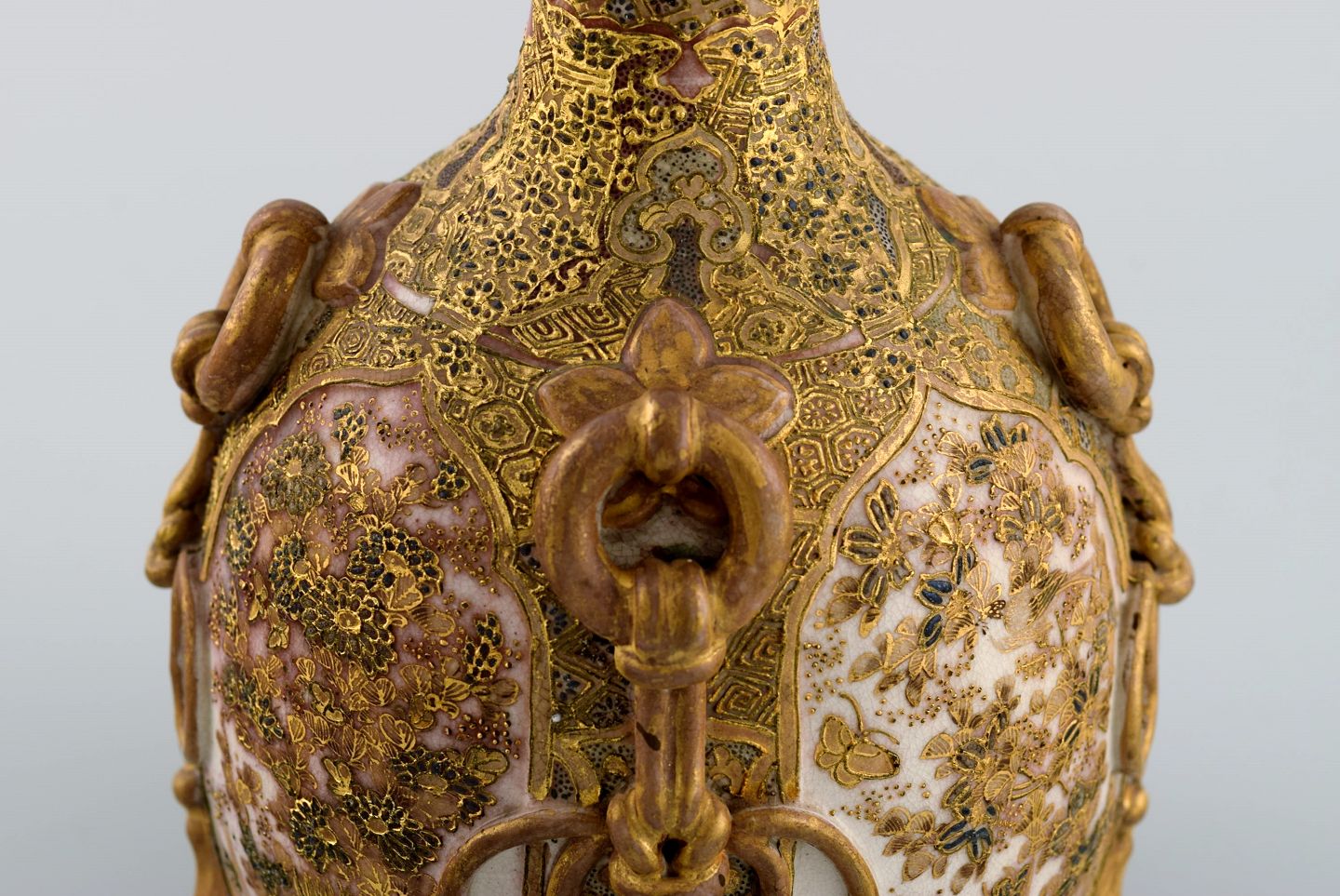 Meiji (1868–1912). Japansk satsuma flaskevase dekoreret i farver og guld med blomster i let relief.