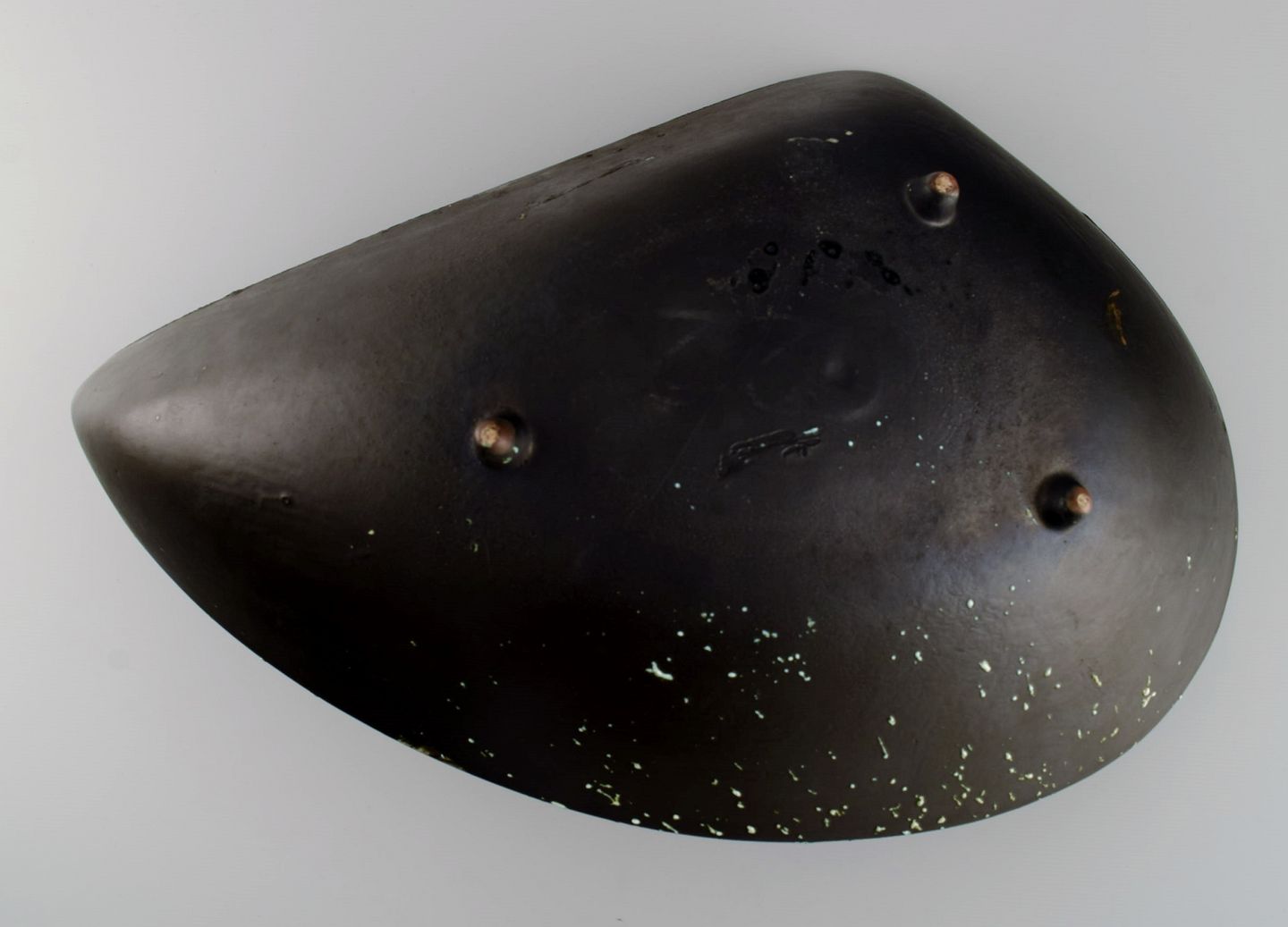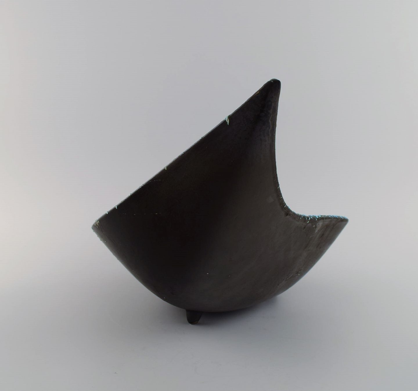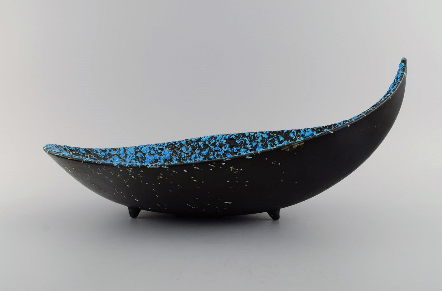 Large freeform bowl in glazed ceramics. Beautiful glaze in azure shades. France, 1960s.