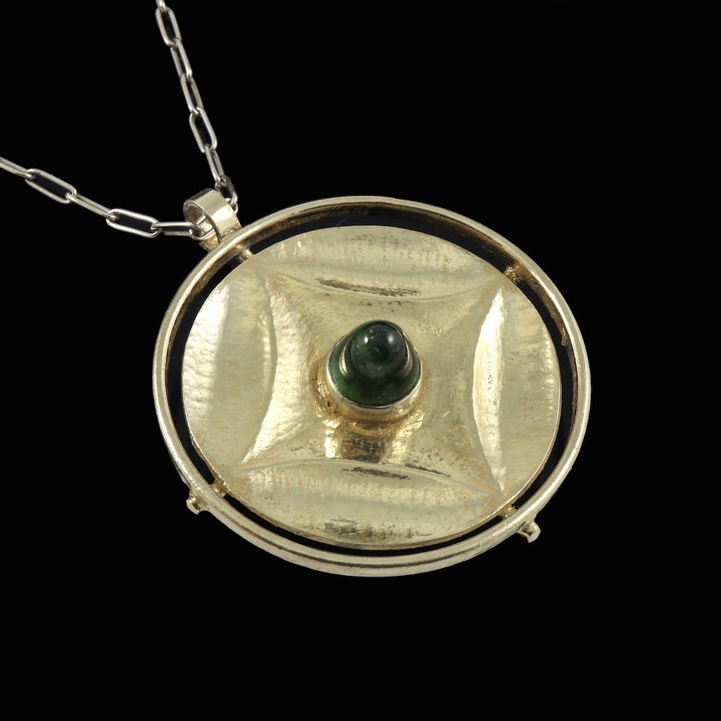 Bent Exner (1932-2006). Halssmykke i lueforgyldt sterling sølv med turmalin.