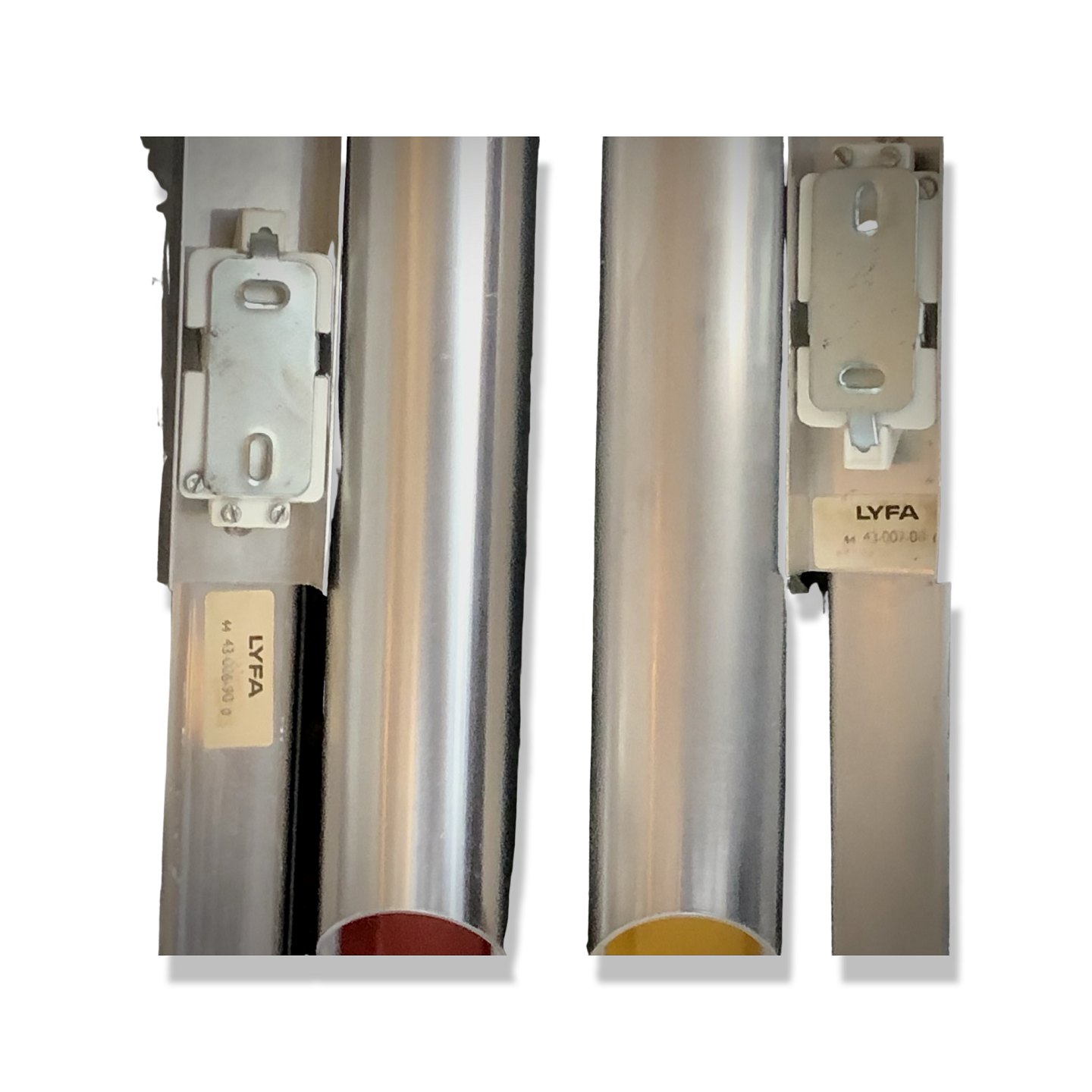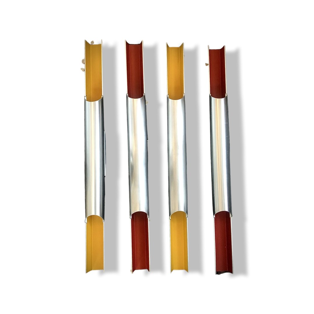 Bent Karlby / Lyfa: Par Pan-opticon væglamper af aluminium. 2stk røde. De gule er solgt.
