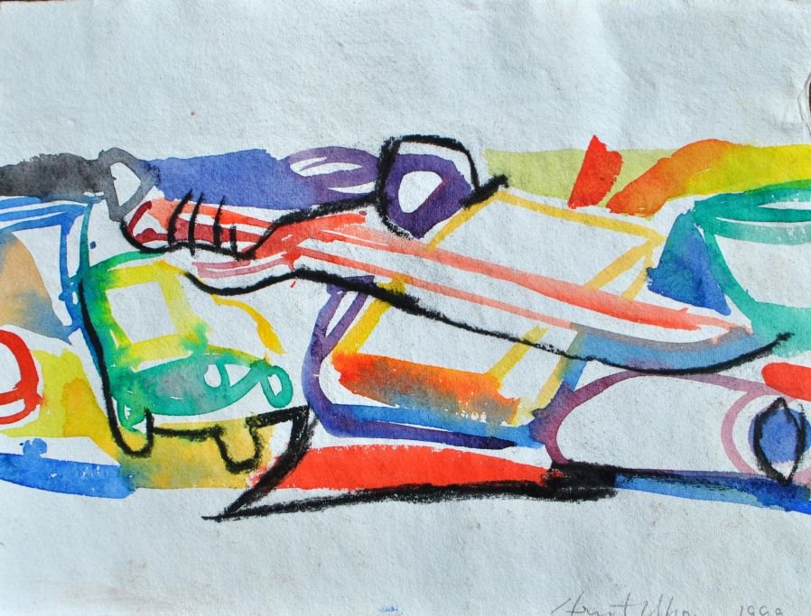 Uhre, Arnt (1954- ) Danmark: Opstilling. Akvarel på papir. Signeret 1999. 27,5 x 38 cm.