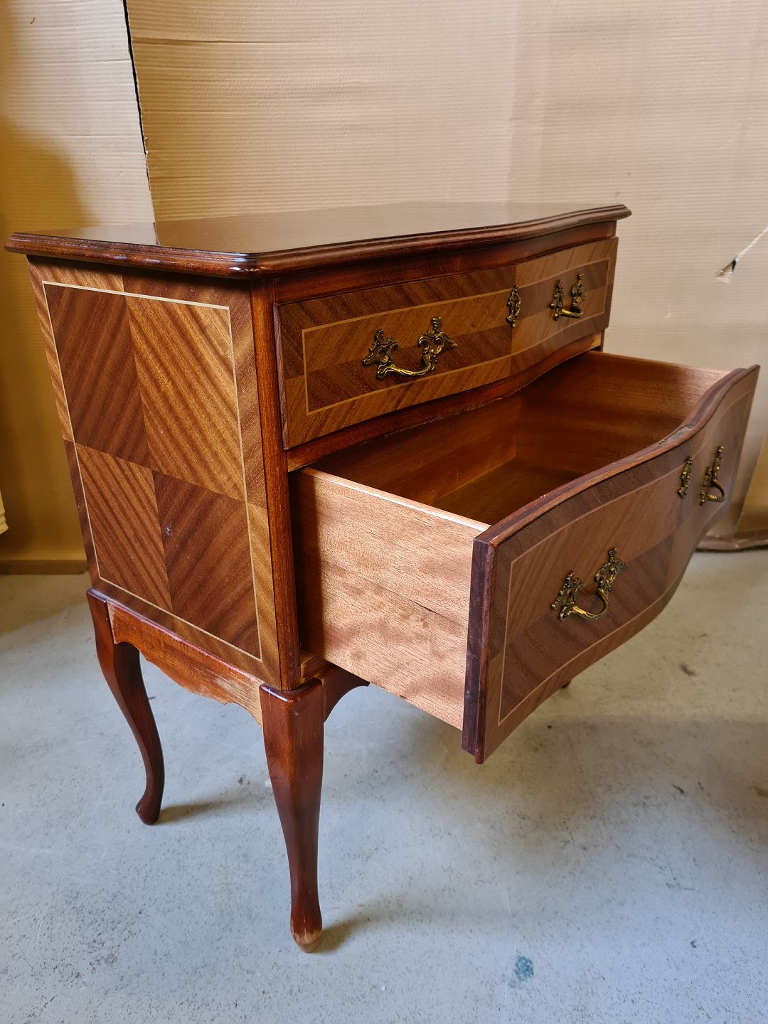 Kommode i fineret mahogni fra 1990erne.