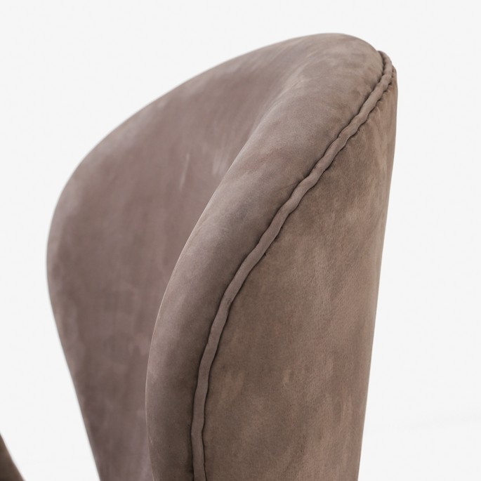 AJ 3320 - Nybetrukket 'Svanen'-lænestol i Royal Nubuck-læder (farve: Cinnamon) på ny fod af aluminium. KLASSIK tilbyder Svanen i læder efter eget valg. Kontakt os venligst for mere information.