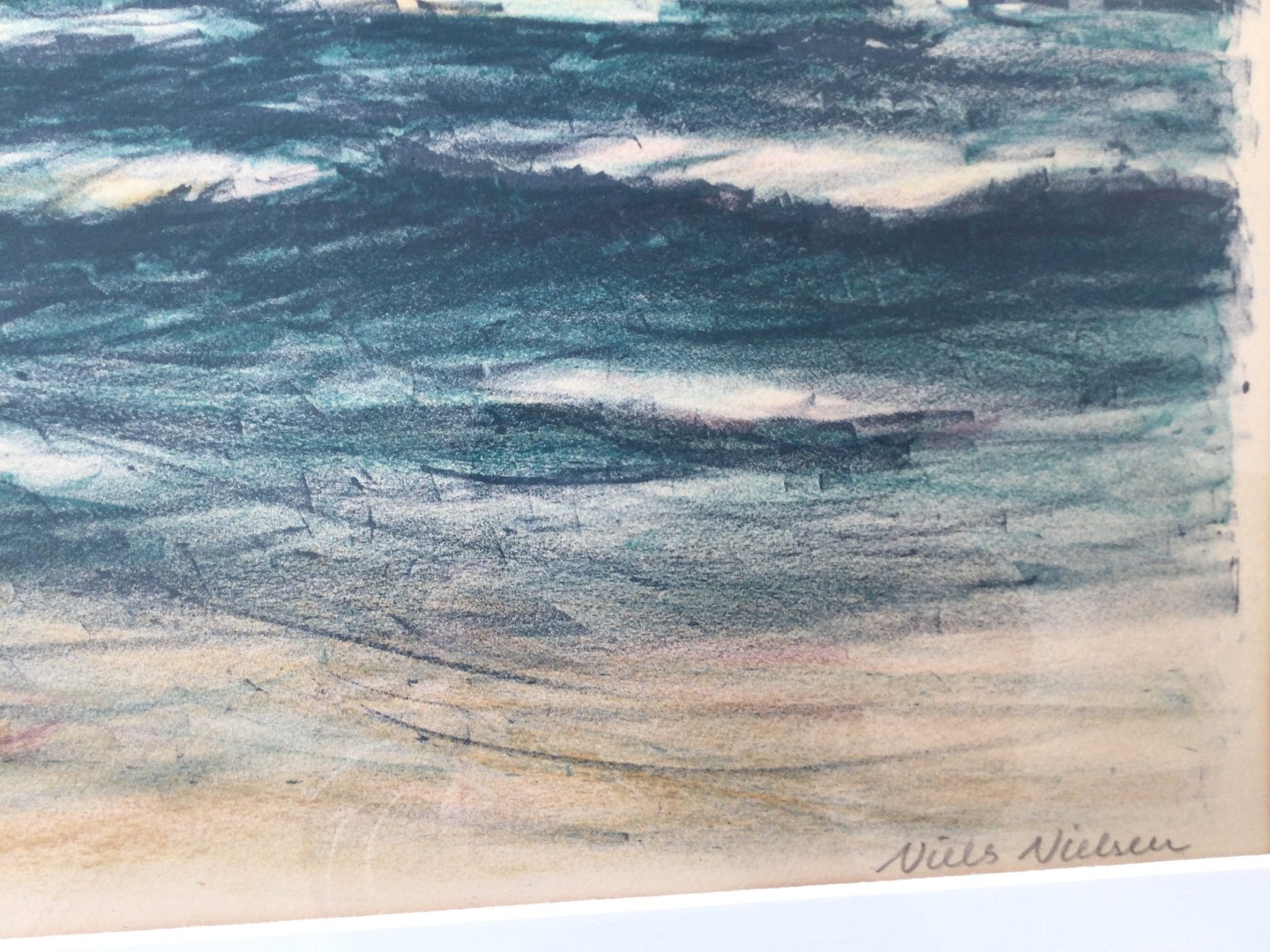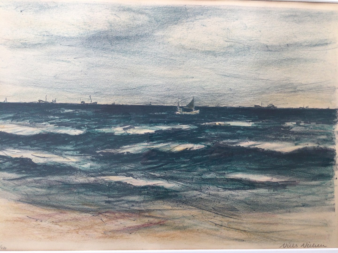 Litografi af Niels Nielsen - Skibe på vandet.