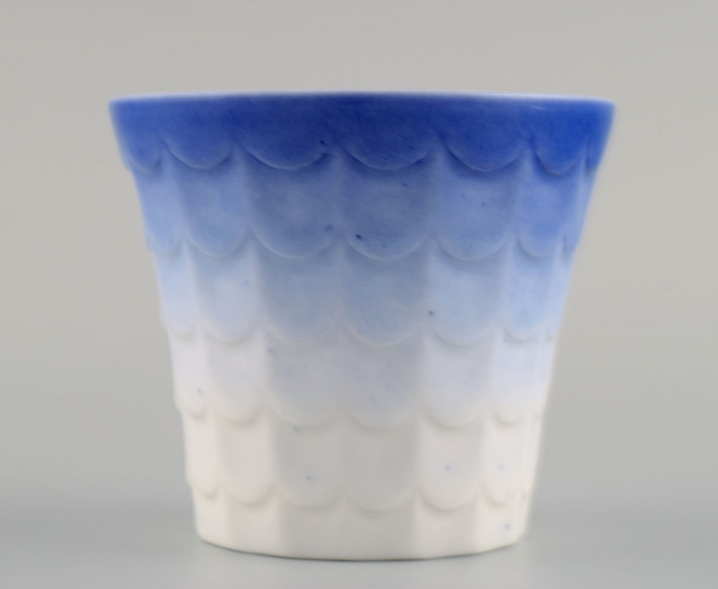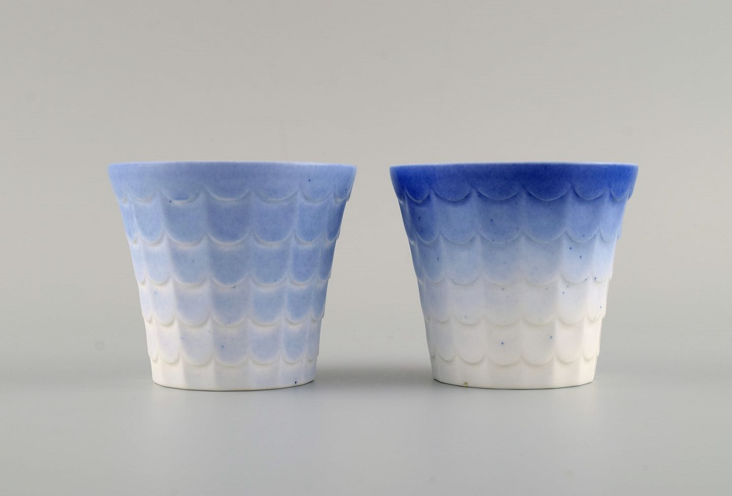 Wilhelm Kåge for Gustavsberg. Fire art deco urtepotter i glaseret porcelæn. Svensk design, 1960'erne.