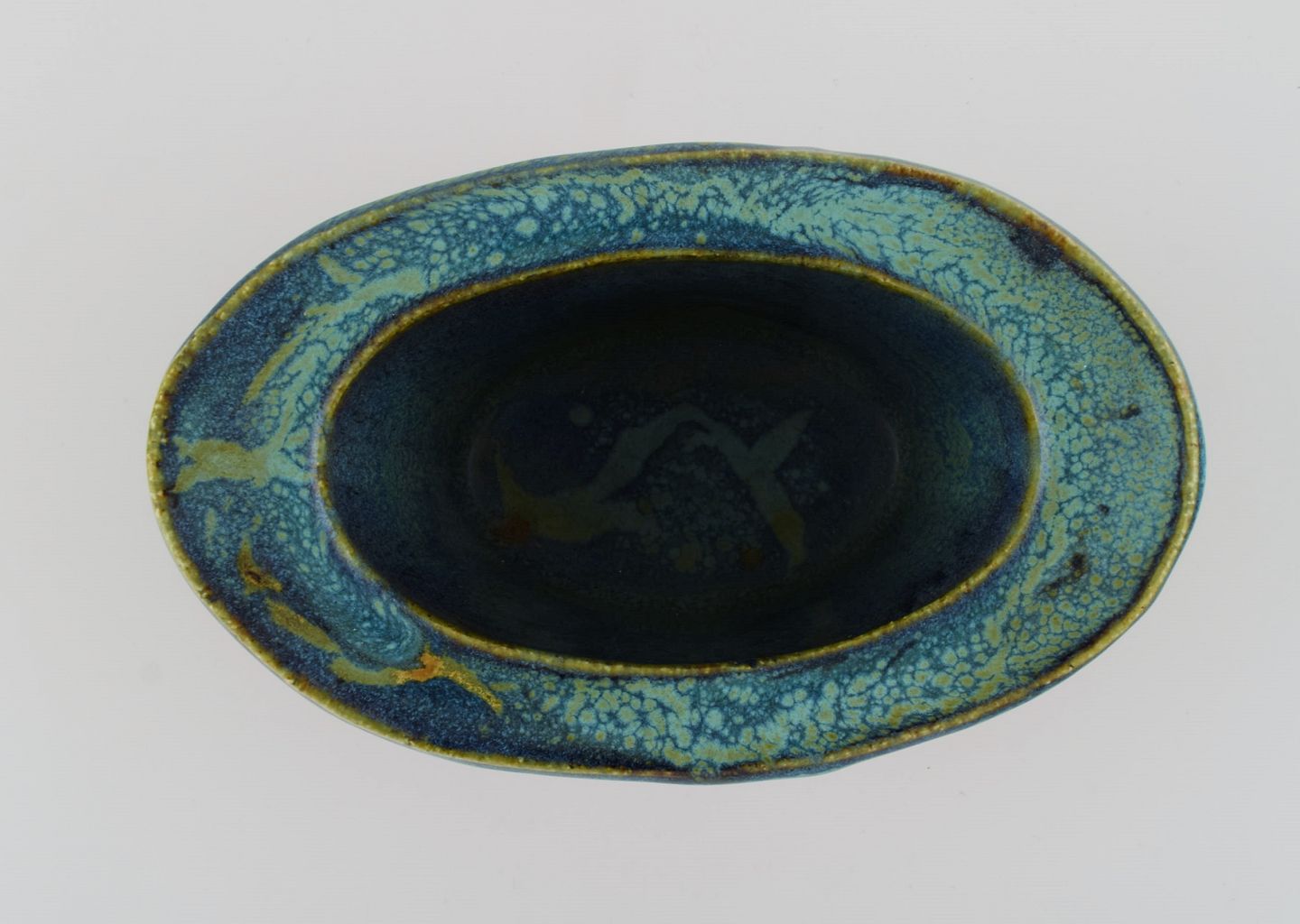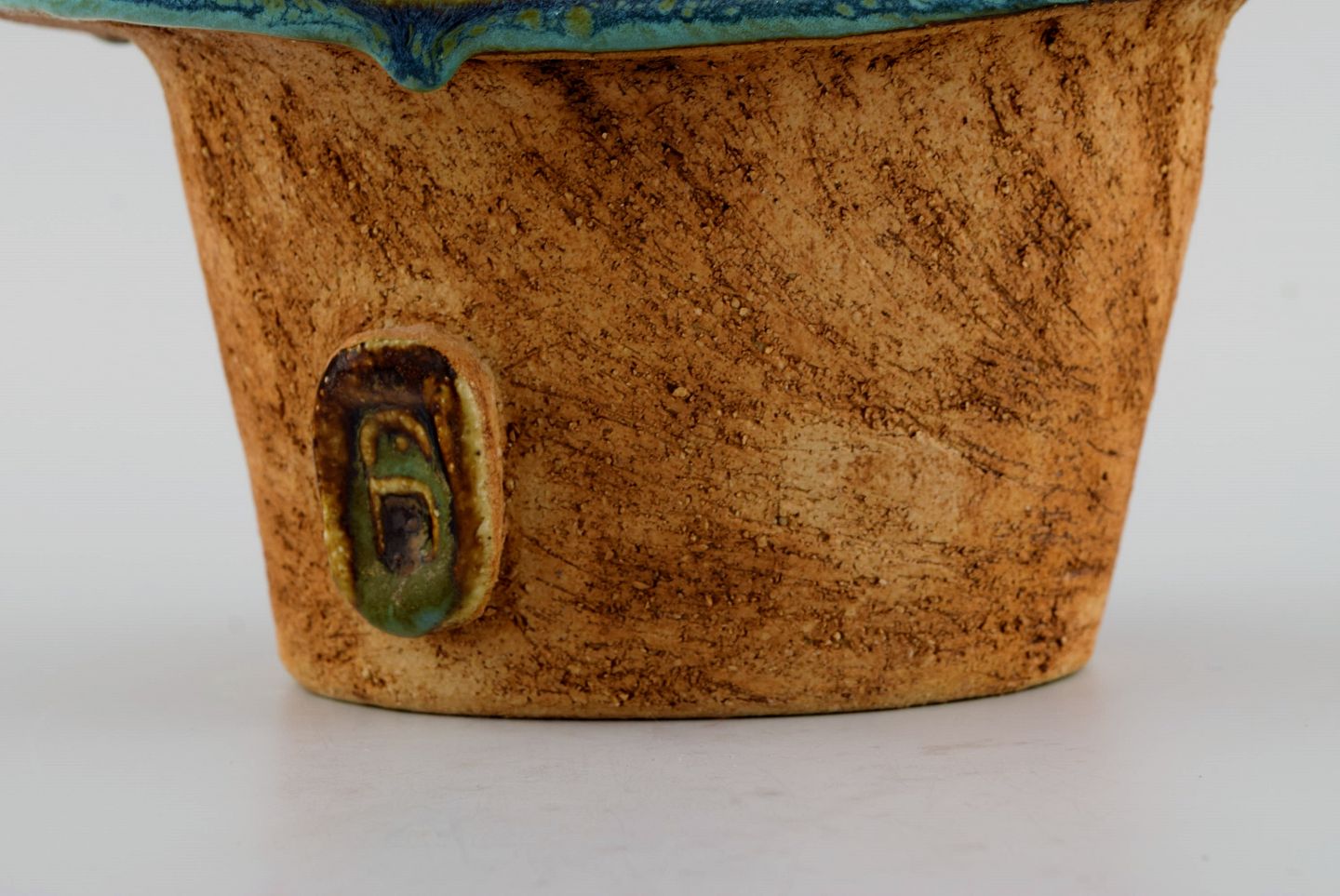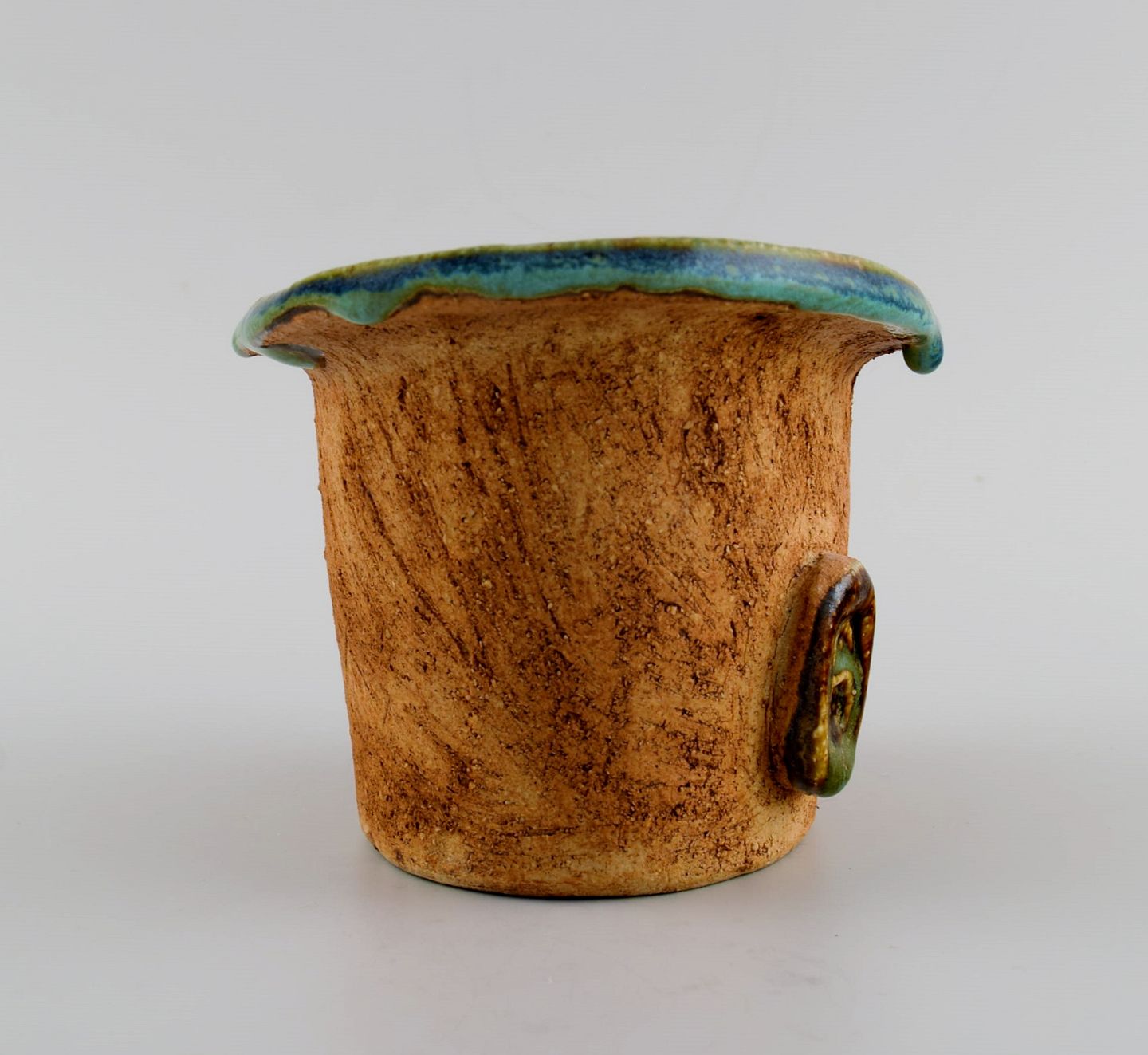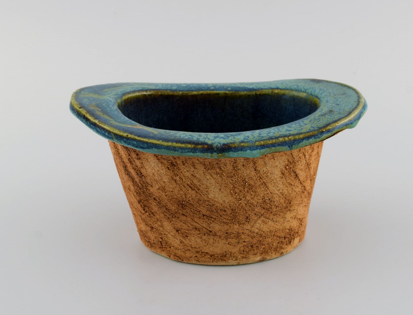 Curt M. Addin (1931-2007) for Glumslöv. Freeform vase i delvist glaseret stentøj. Smuk spættet glasur i blågrønne nuancer. Svensk design, 1960/70'erne.