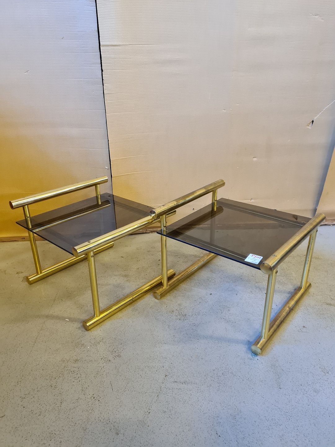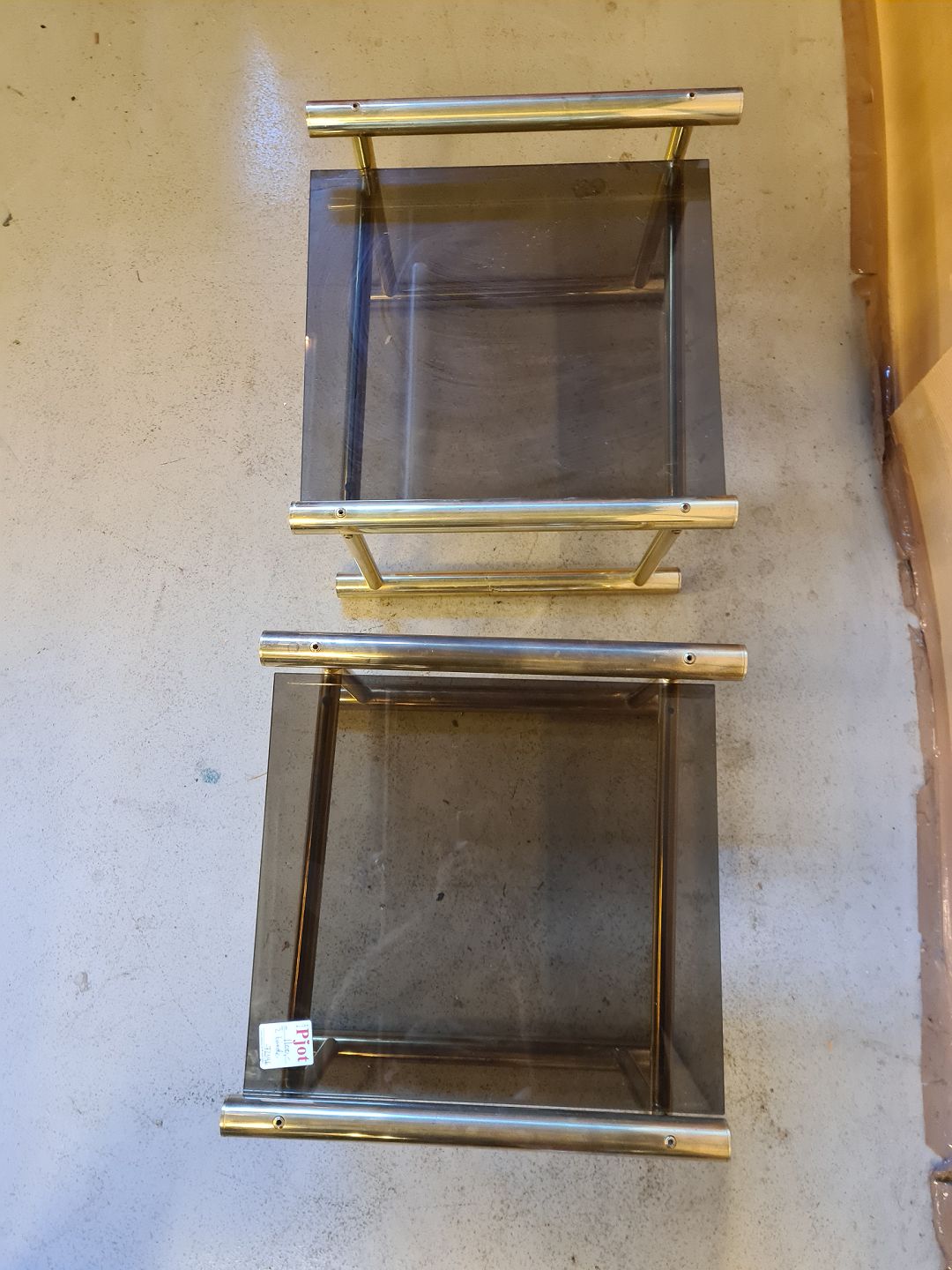 2 Borde i messing med glasplade, fra 1980erne.