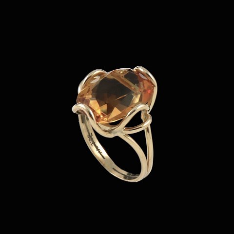 Jørgen Larsen - Copenhagen. 14k Gold Ring with Orange Topaz.