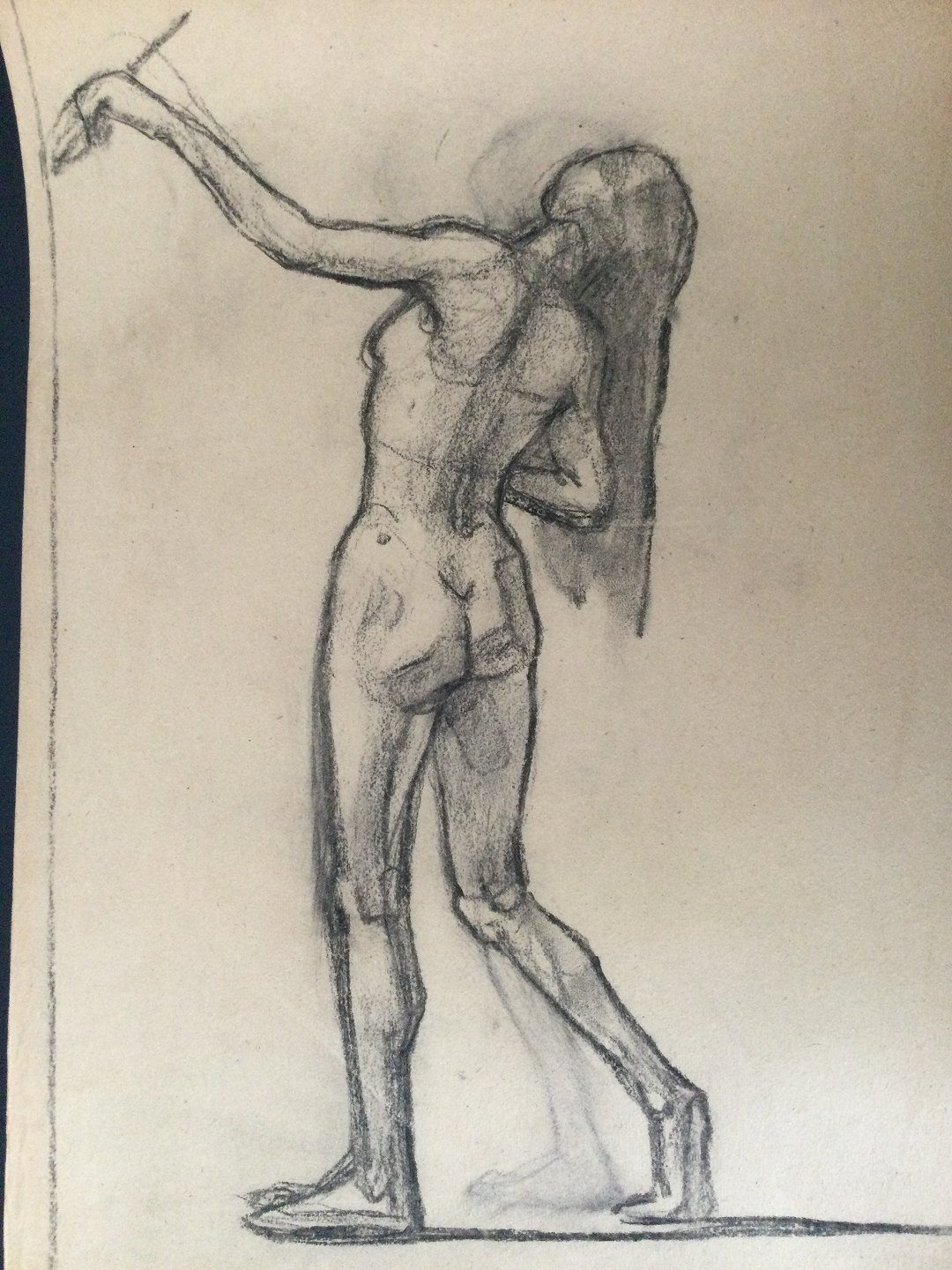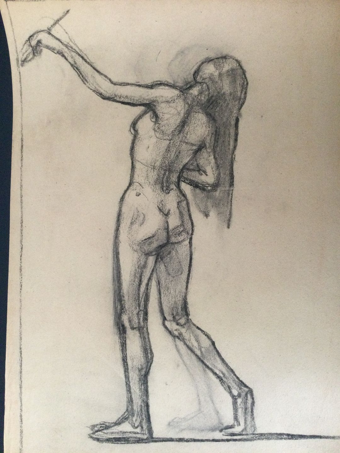 Tegning af Robert Büchtger - Studie af nøgen kvinde der maler.