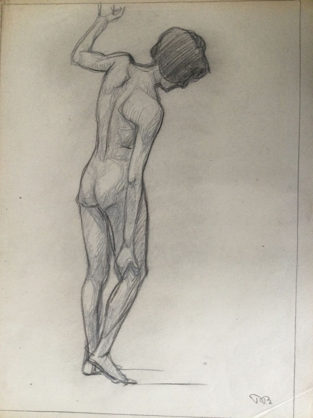 Tegning af Robert Büchtger - Studie af nøgen pige.