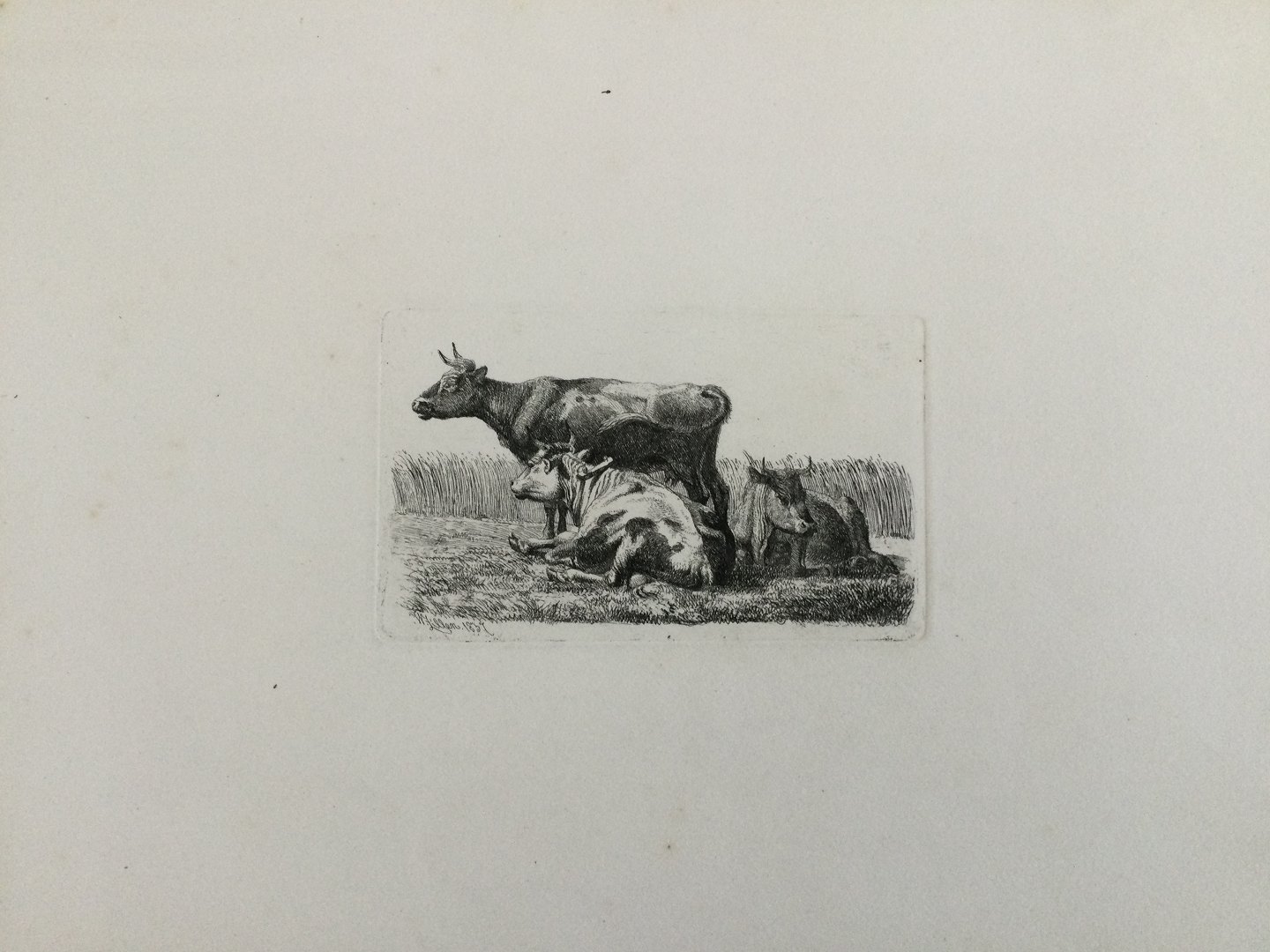 Radering af Johannes Vilhelm Zillen 1857 - 3 køer på marken.