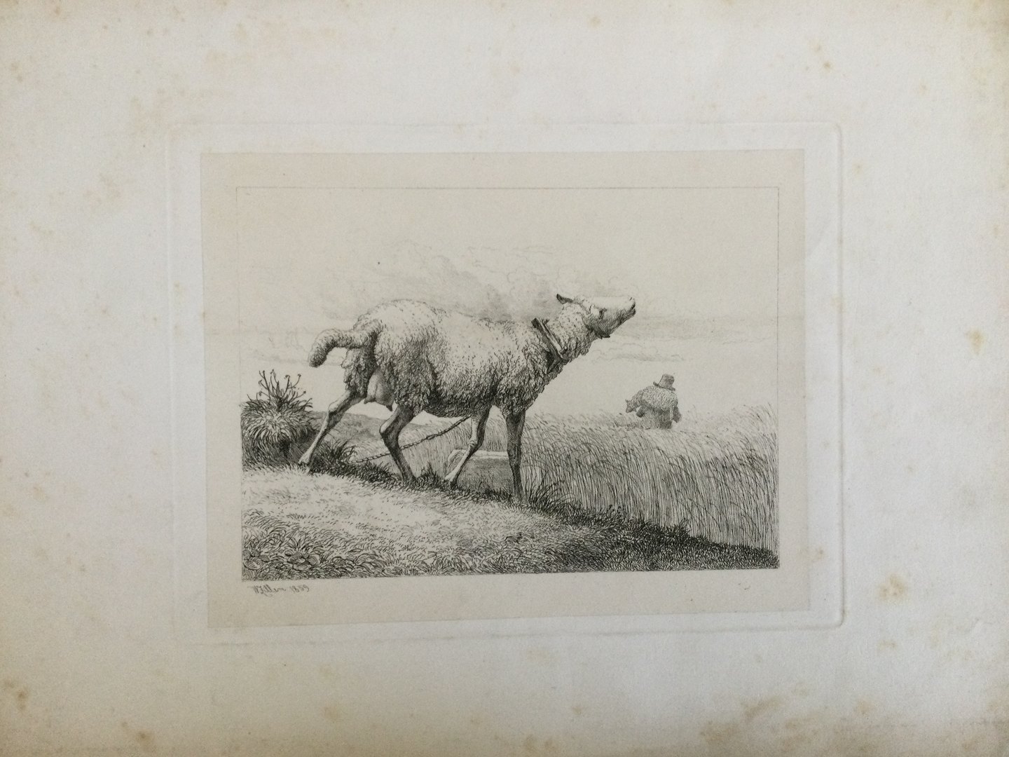 Radering af Johannes Vilhelm Zillen 1859 - Får og mand med lam.