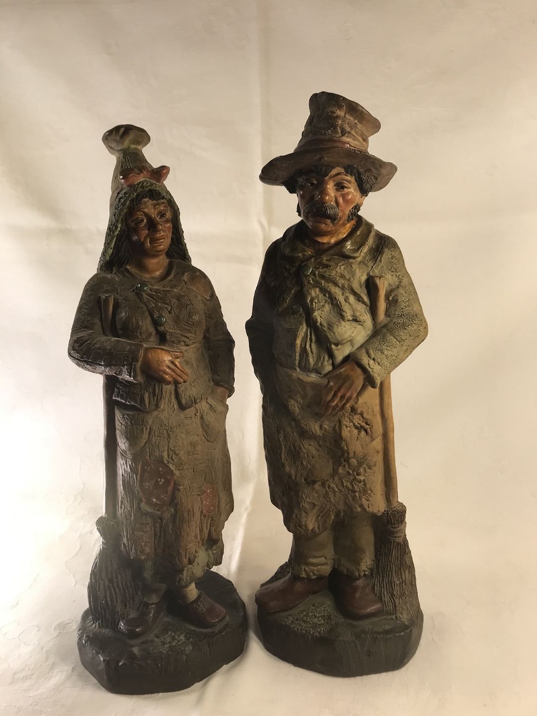 To Teracotta Figurer i form af fattige mand og kone