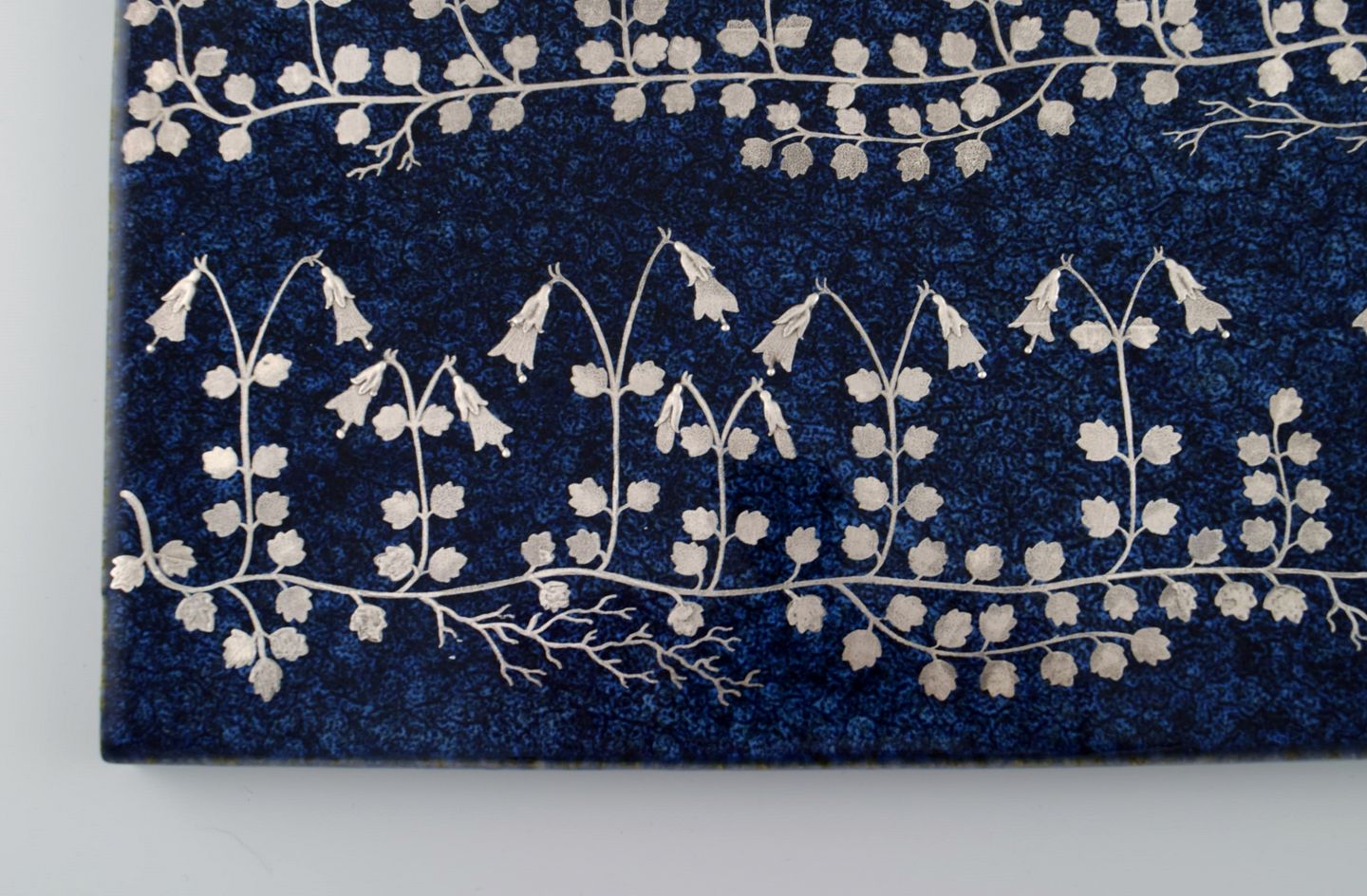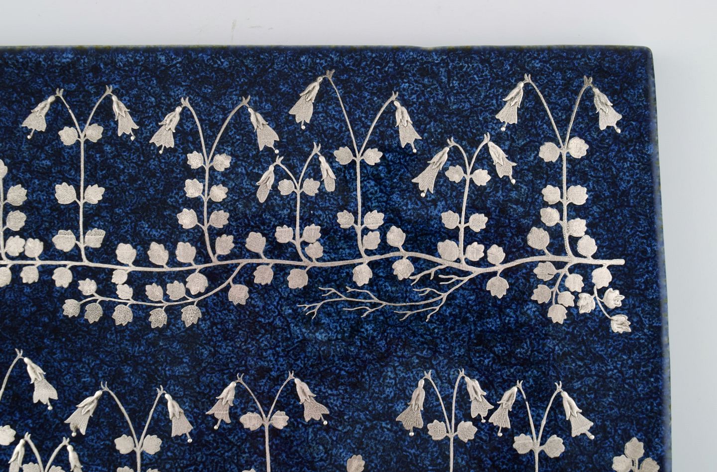 Heinz Erret (1920-2003) for Gustavsberg. "Linea" vægplakette i glaseret keramik med sølvindlæg i form af blomster. 1970'erne.