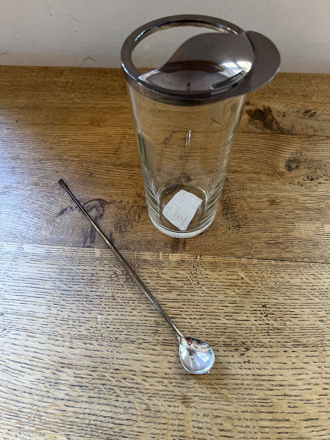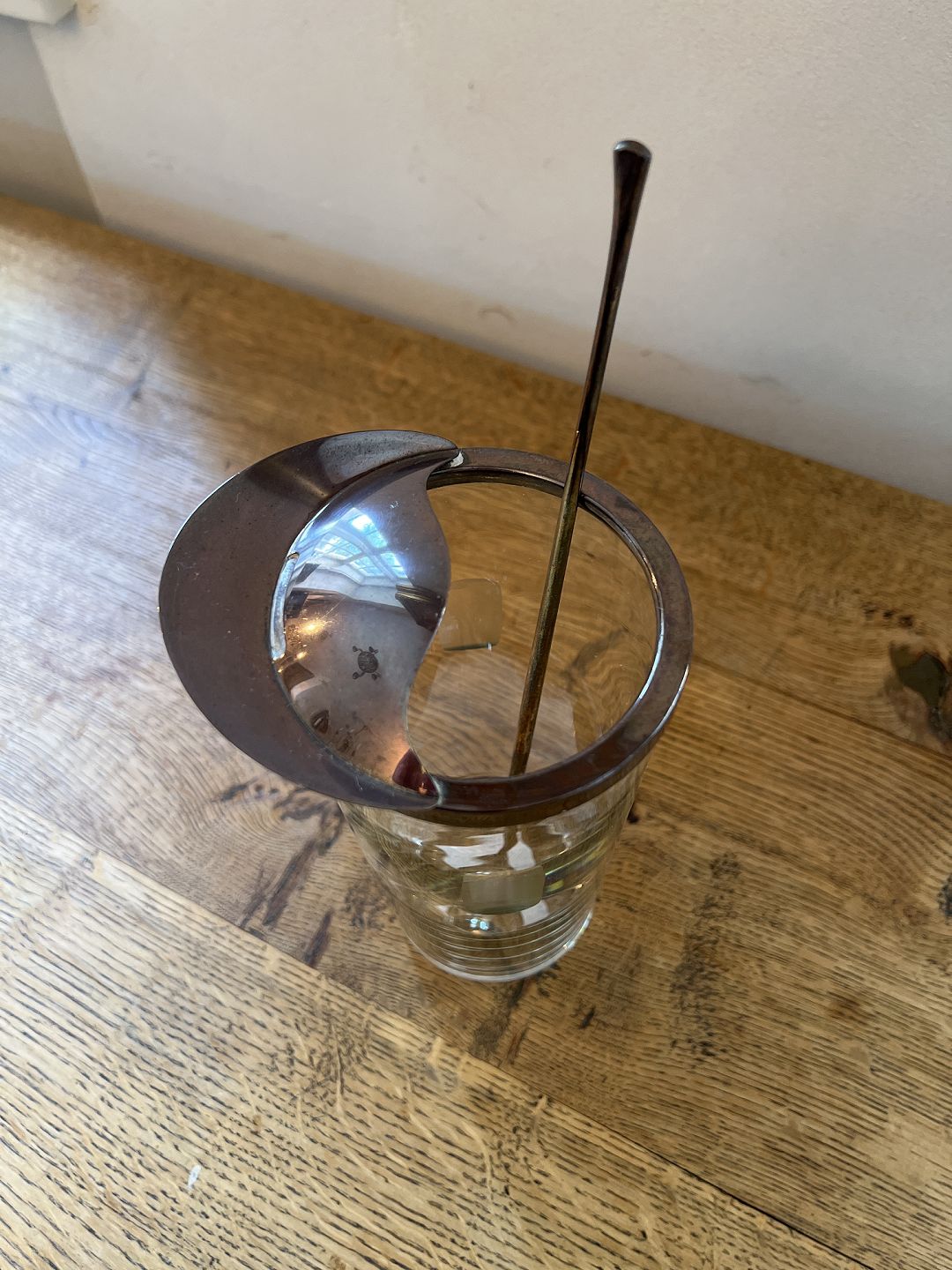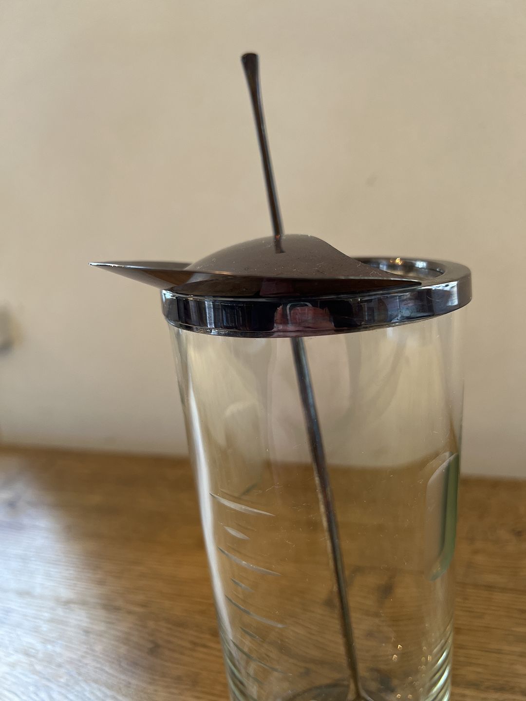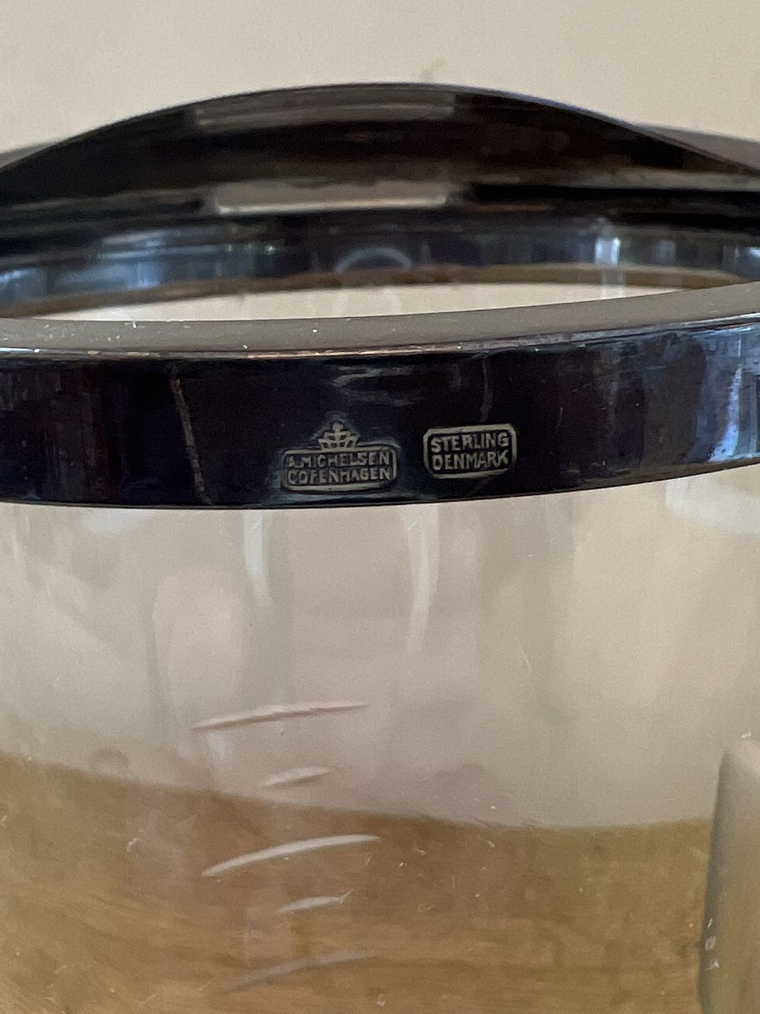 Anton Michelsen cocktail pitcher i glas og sterlingsølv med røreske i sterlingsølv.