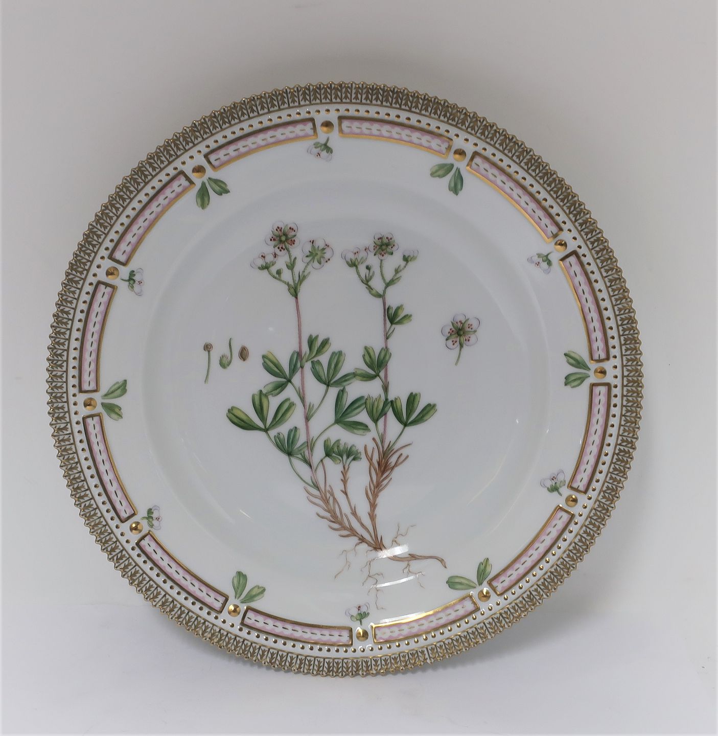 Royal Copenhagen, Flora Danica. Middags tallerken. Model 624 (3549). Diameter 25 cm. (1 sortering). Potentilla retusa Horn