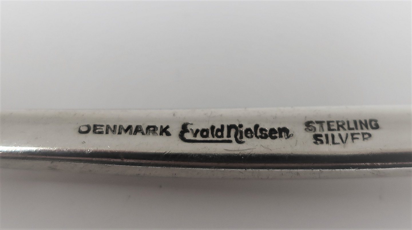 Evald Nielsen. Sølvbestik (925). Pålægsgaffel. Længde 14,5 cm