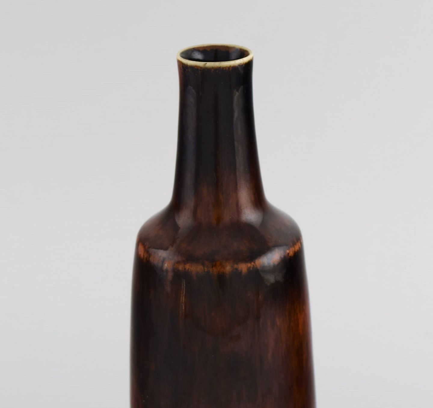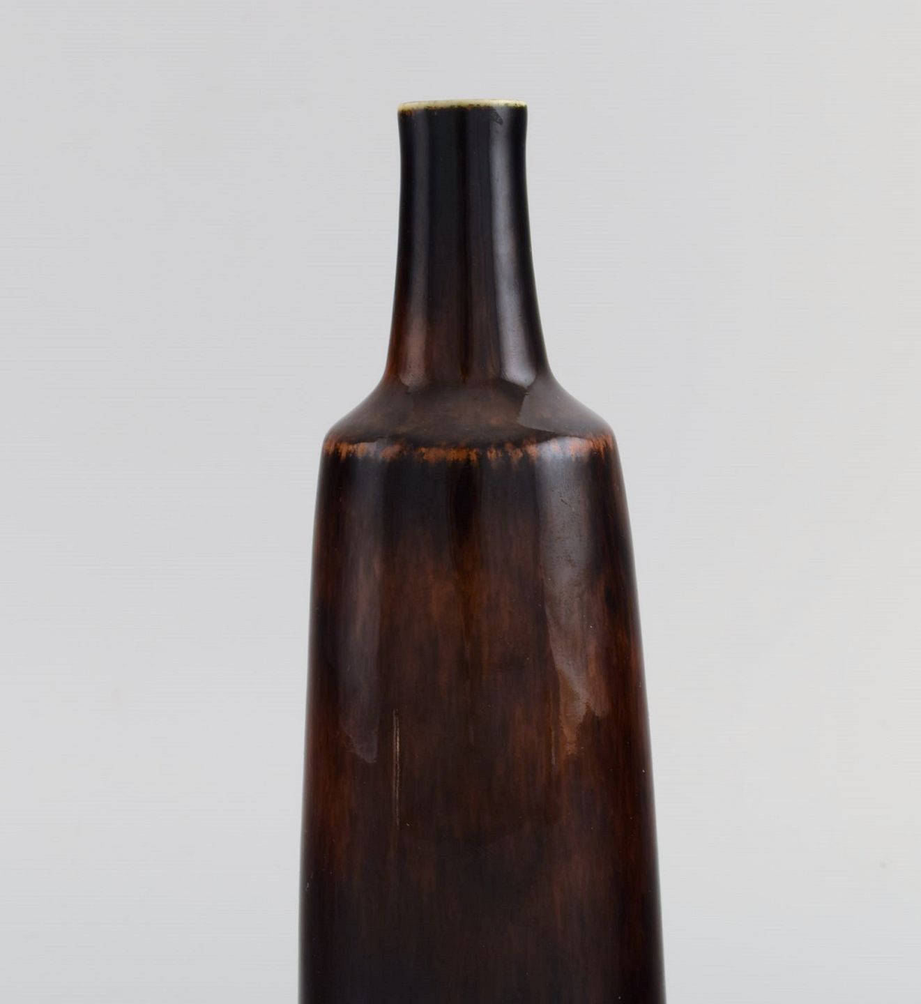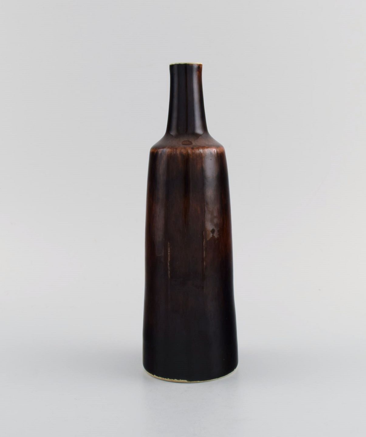 Carl Harry Stålhane (1920-1990) for Rörstrand. Flaskeformet vase i glaseret keramik. Smuk glasur i rødbrune nuancer. Midt 1900-tallet.