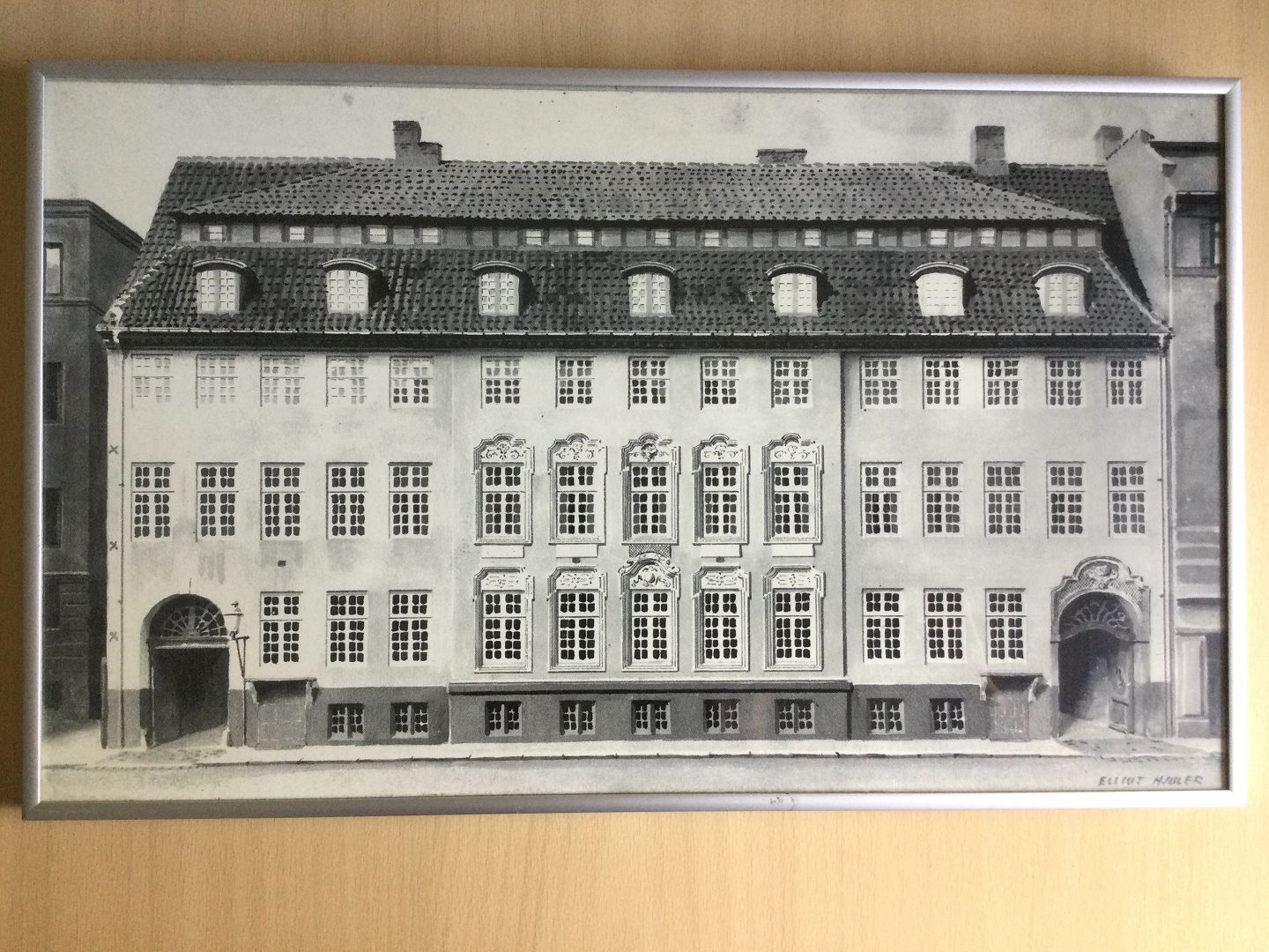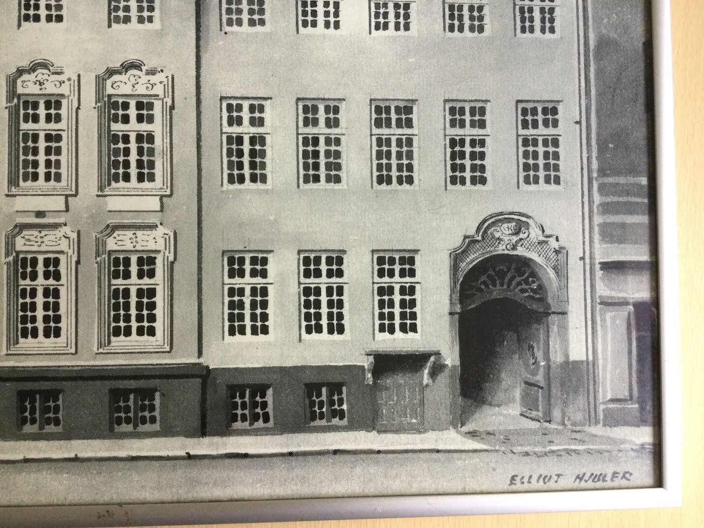 Offset tryk efter en akvarel af Elliot Hjuler Gyldendals Gård i København.