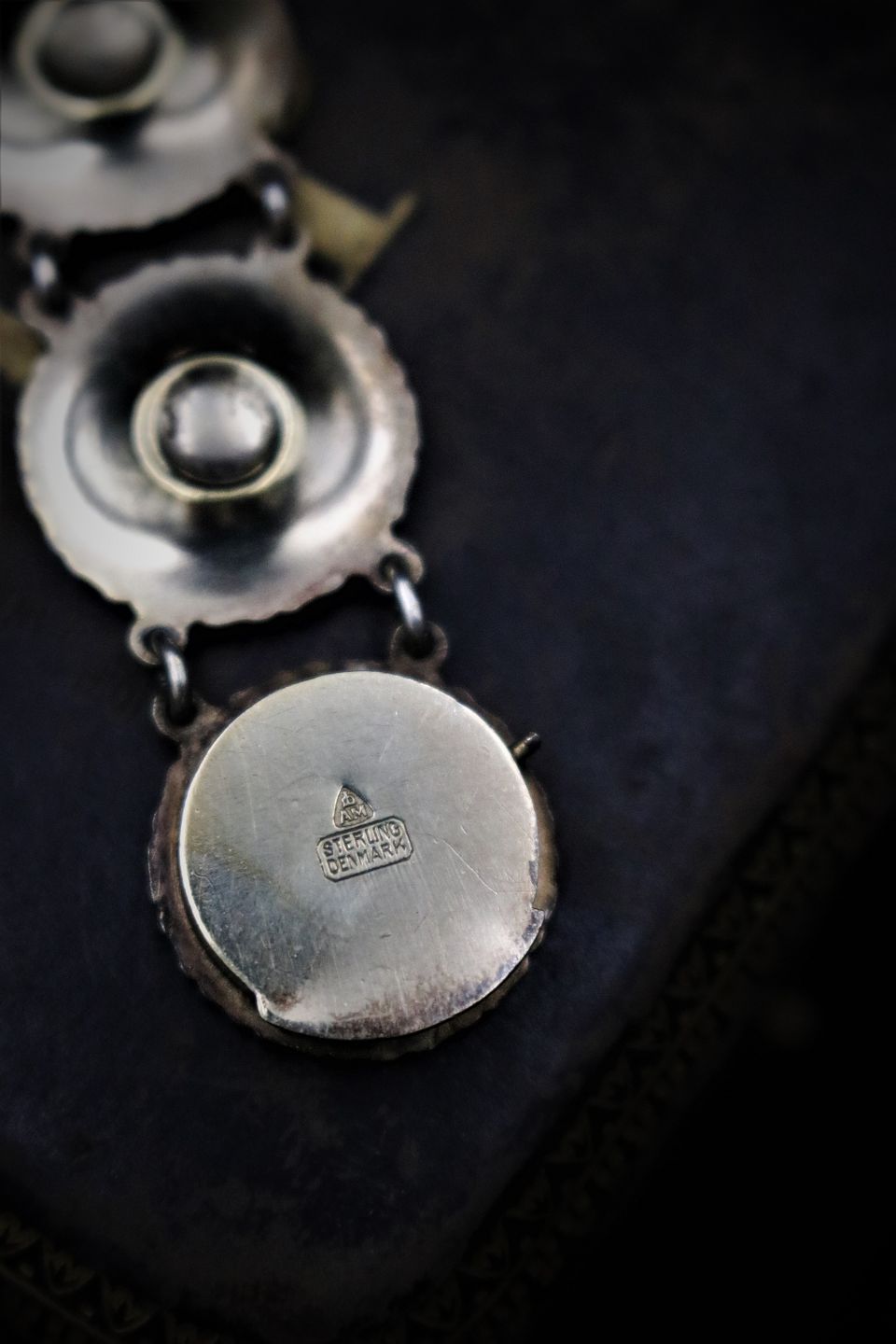 Gammelt Marguerit / Daisy armbånd i sterling sølv og hvid emalje fra A. Michaelsen.