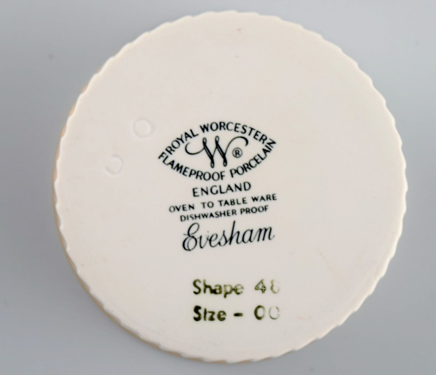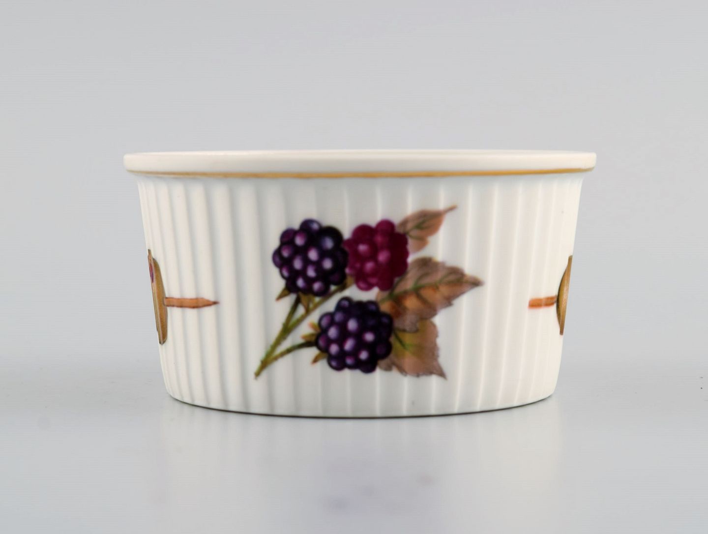 Royal Worcester, England. Otte små Evesham porcelænsskåle dekoreret med frugter og guldkant. 1980'erne.