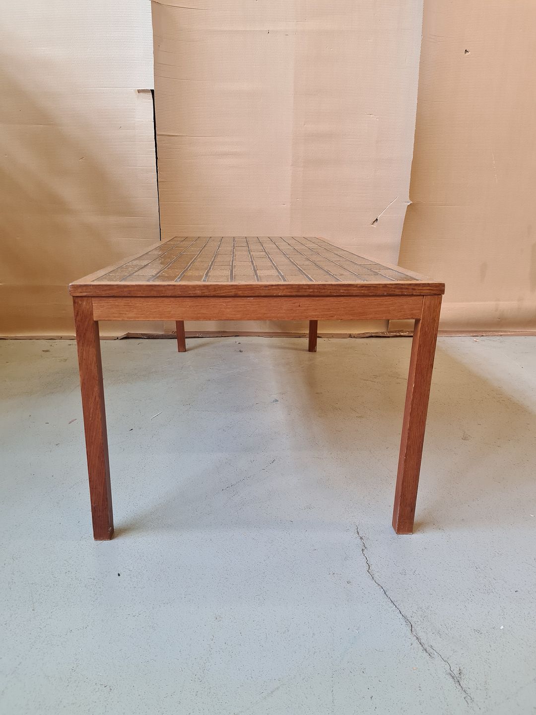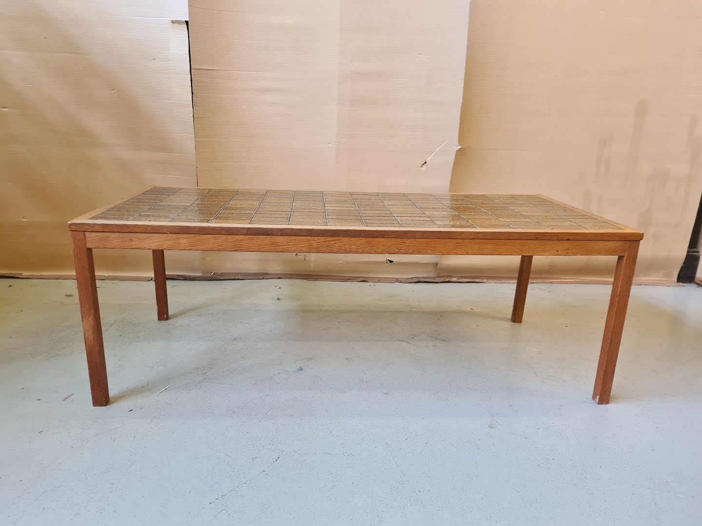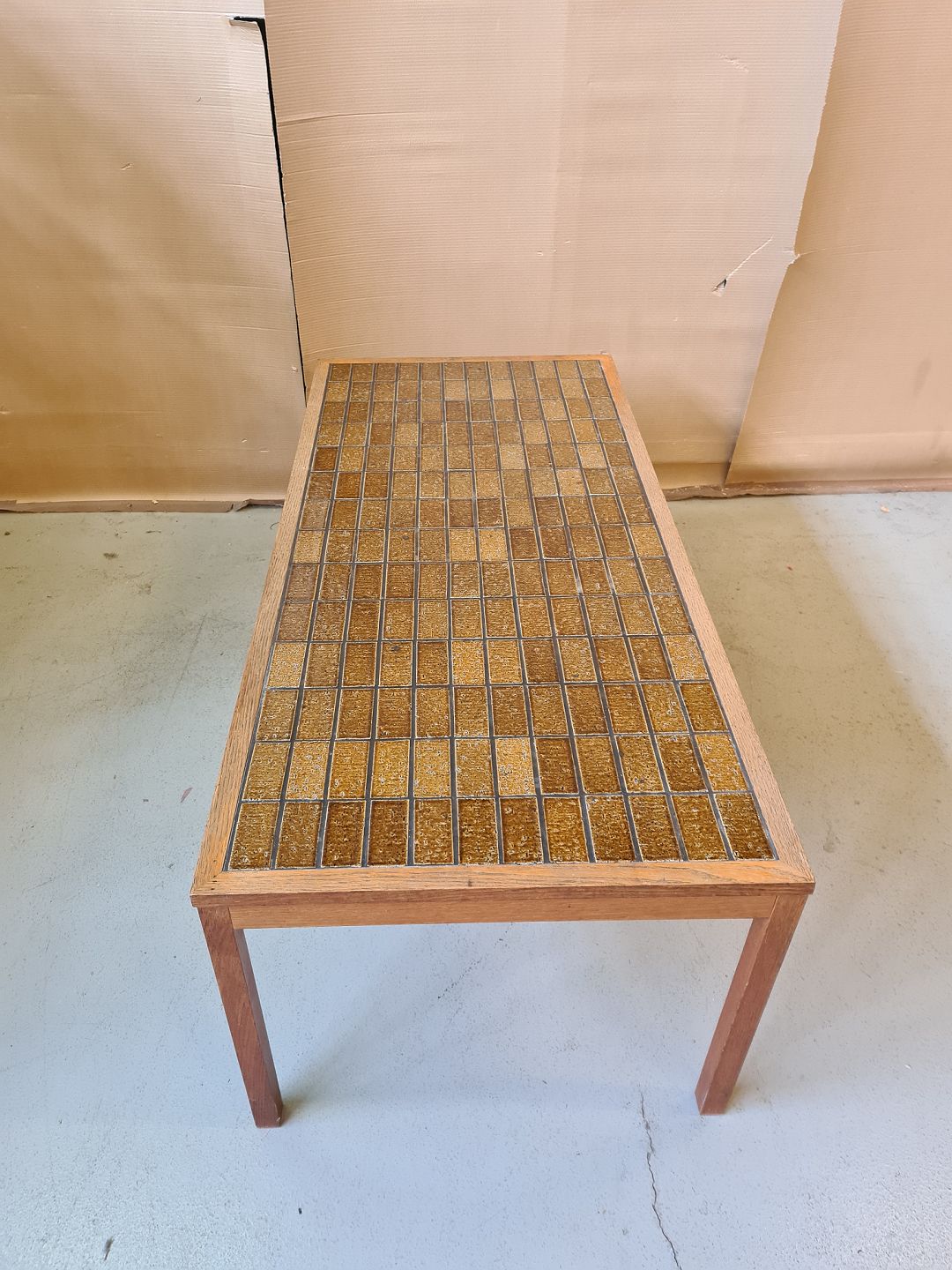 Sofabord i fineret egetræ med kakler, fra 1960erne.