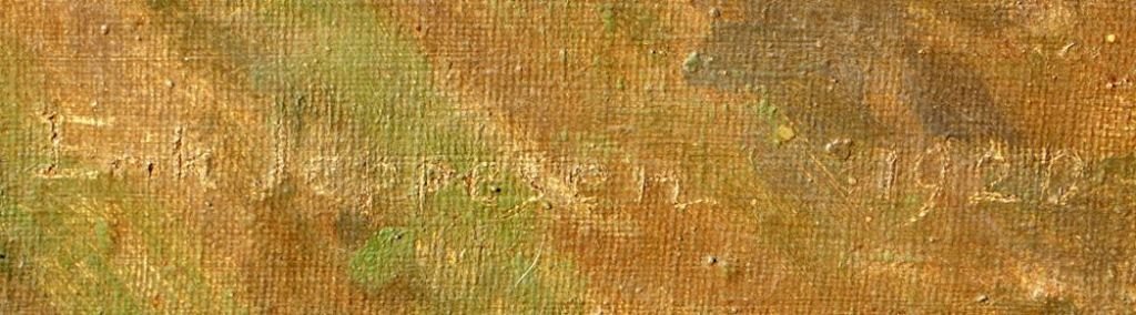 Jeppesen, Erik (19./20 årh.) Danmark: Landskab. Olie på lærred. Signeret Erik Jeppesen 1920. 67 x 89 cm.