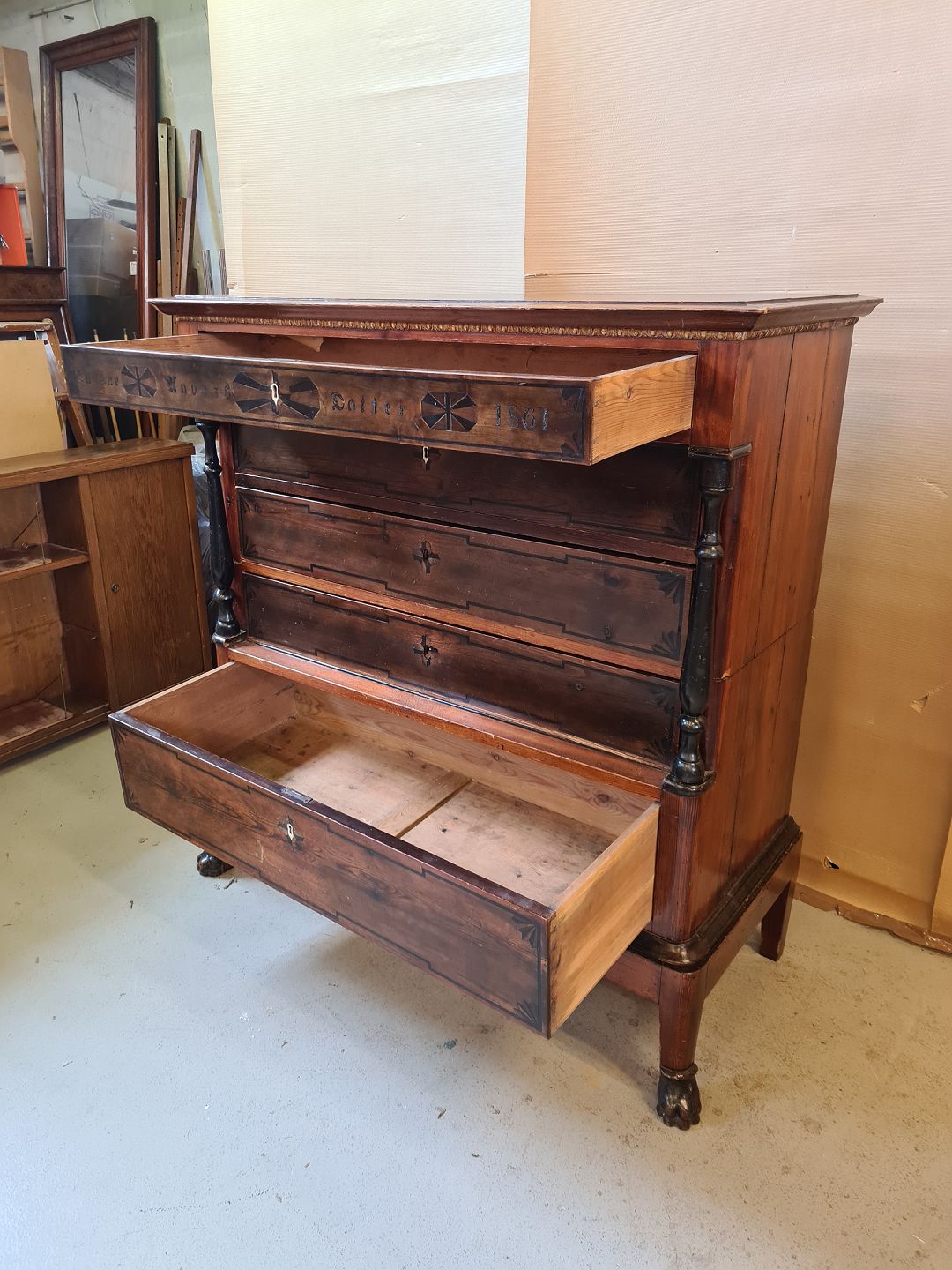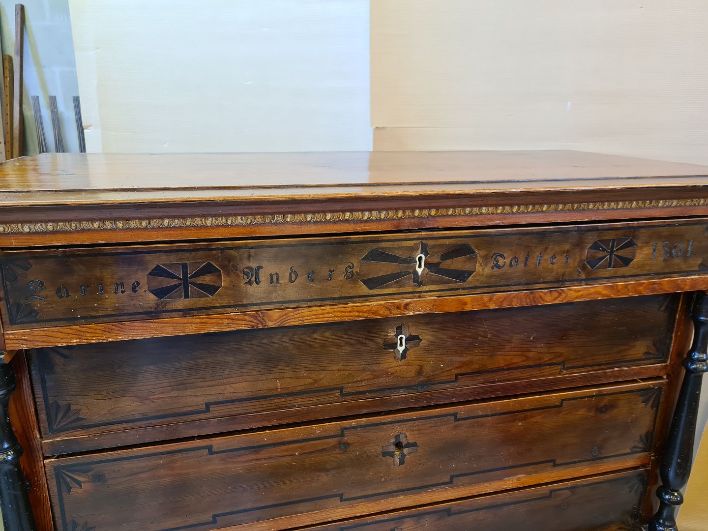Dragkiste i massivt fyrretræ, fra det Herrens år 1861