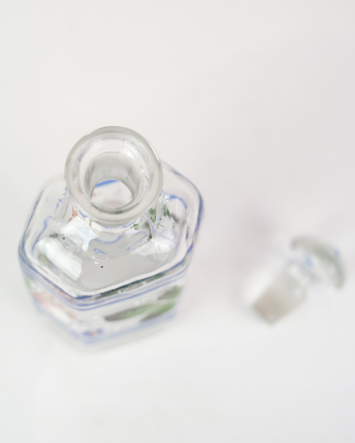 Karaffel, håndmalet blomster dekoration, 1930'erne.