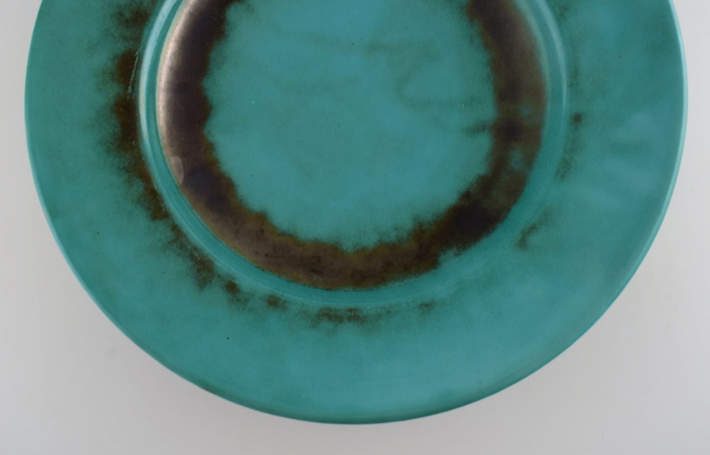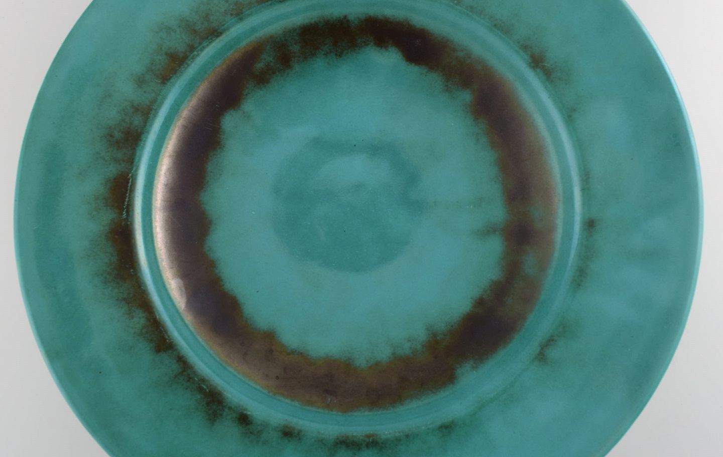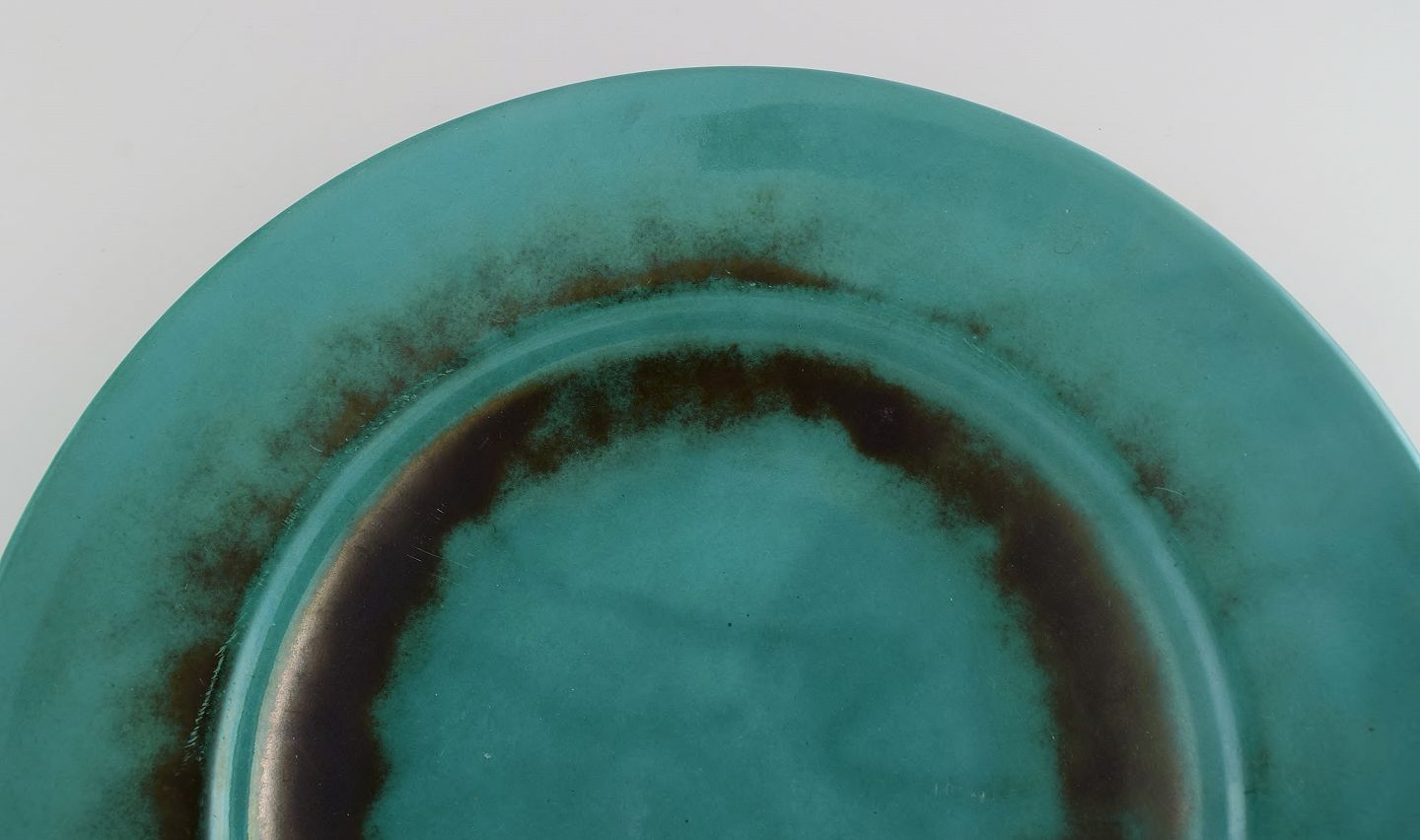 St. Erik, Upsala. Stor art deco skål / fad i glaseret keramik. Smuk glasur i grønne nuancer. 1930'erne.
