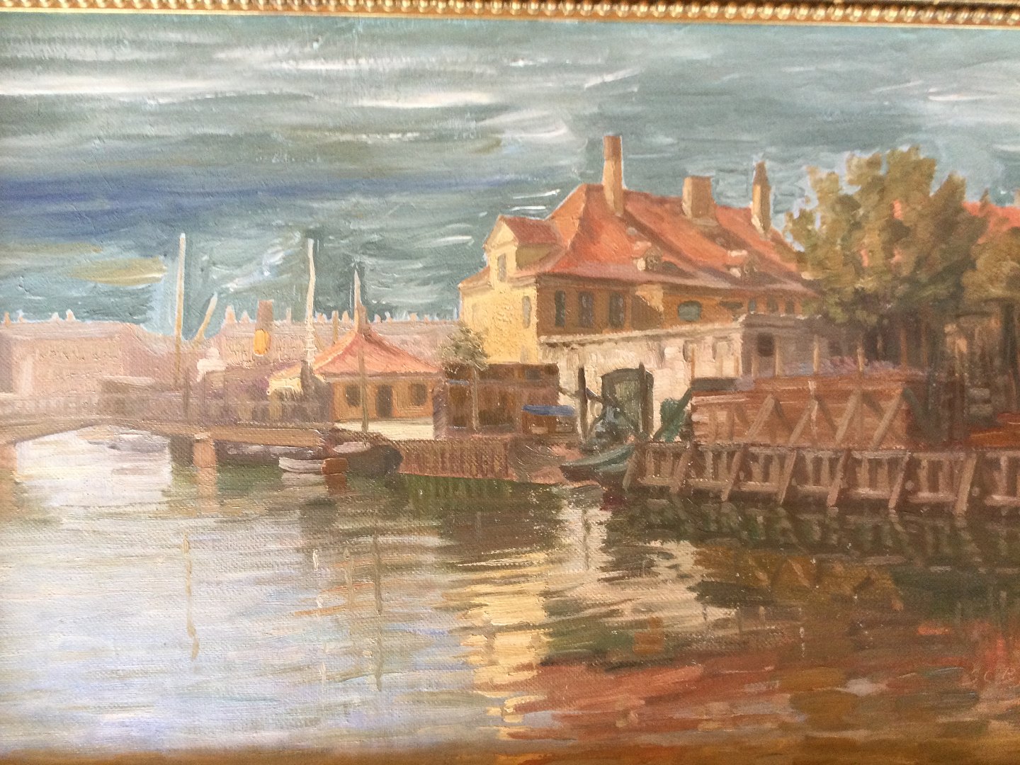 Maleri af S.C. Bjulf 1920 - Havneparti fra København.