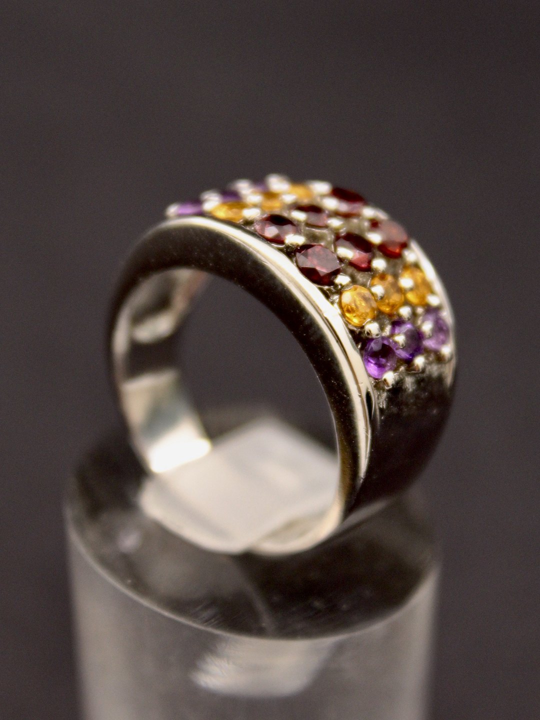 Sterling sølv ring størrelse 57-58 med farvede stene emne nr. 509744