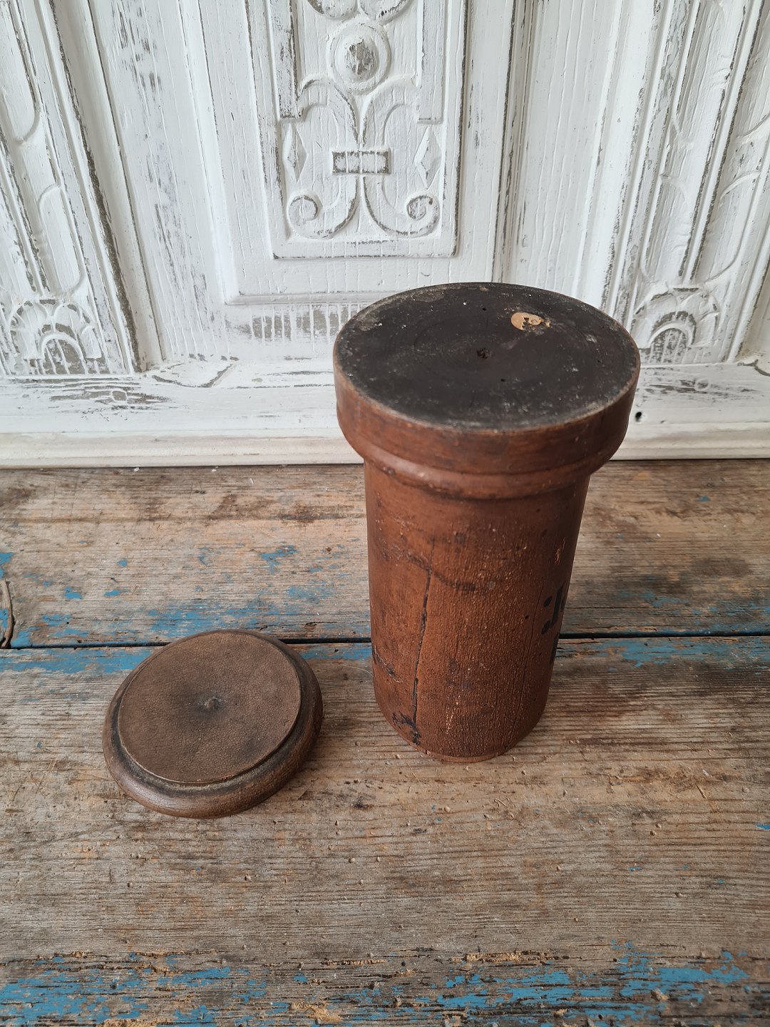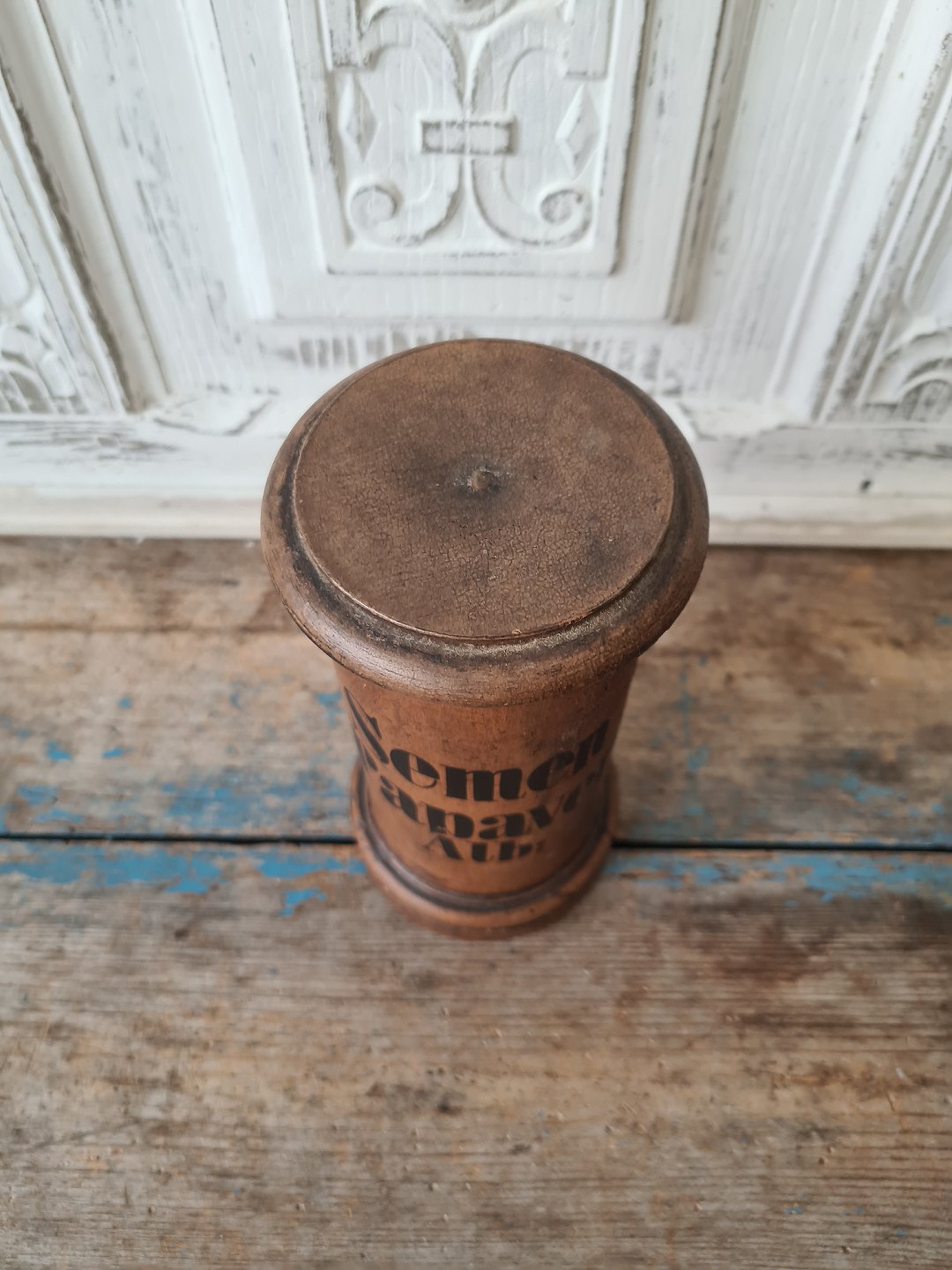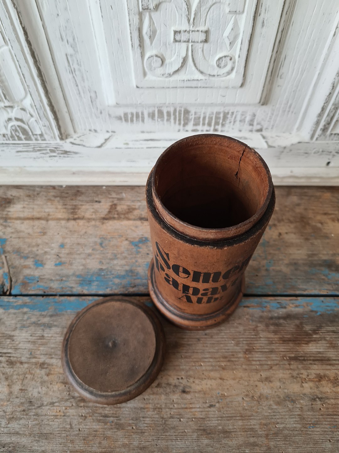 Gammel apotekerkrukke i træ