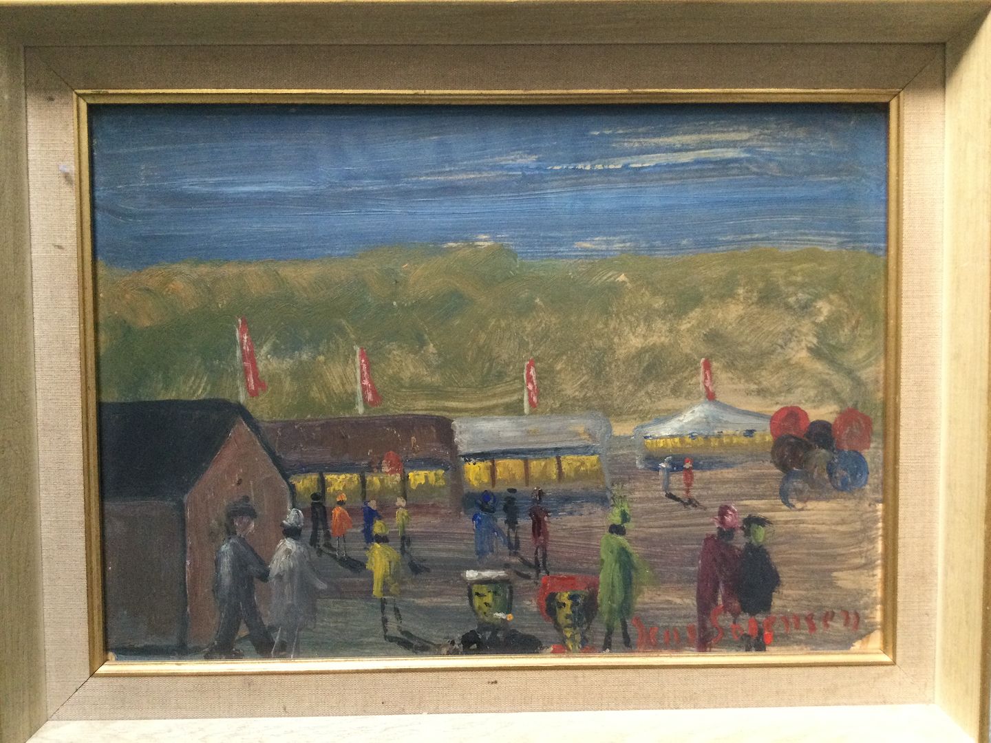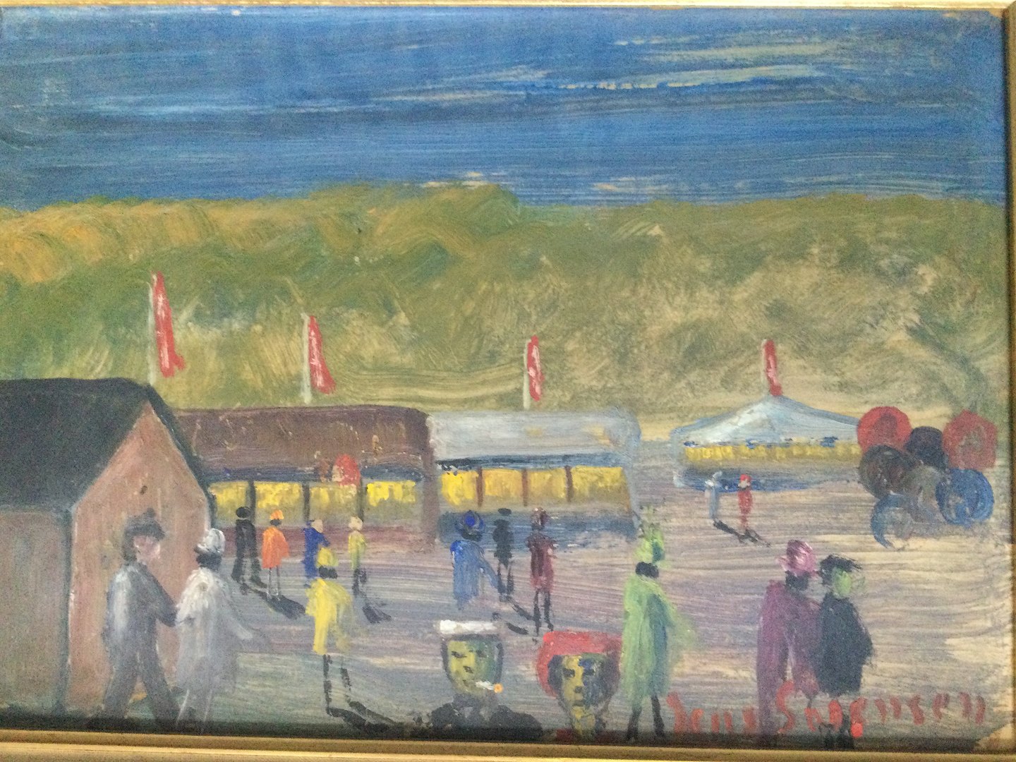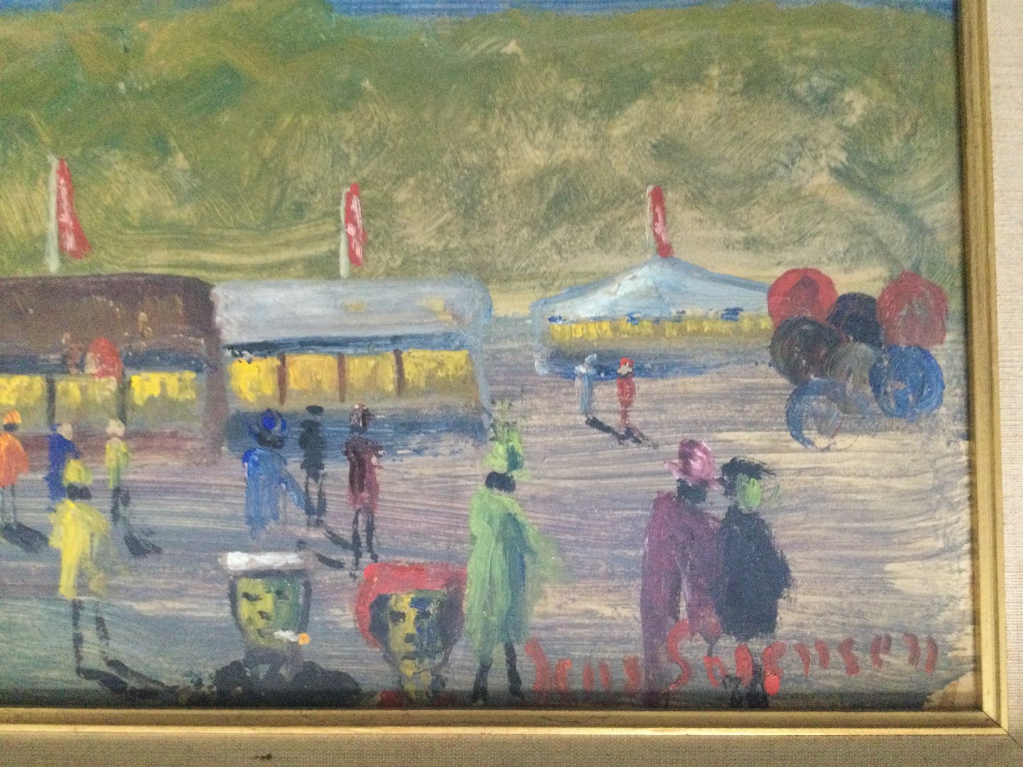 Maleri af Jens Sørensen - Folkeliv på Dyrehavsbakken.
