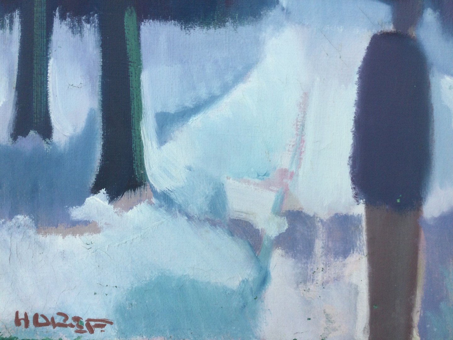 Maleri af Knud Horup - Vinterparti med person på vej.