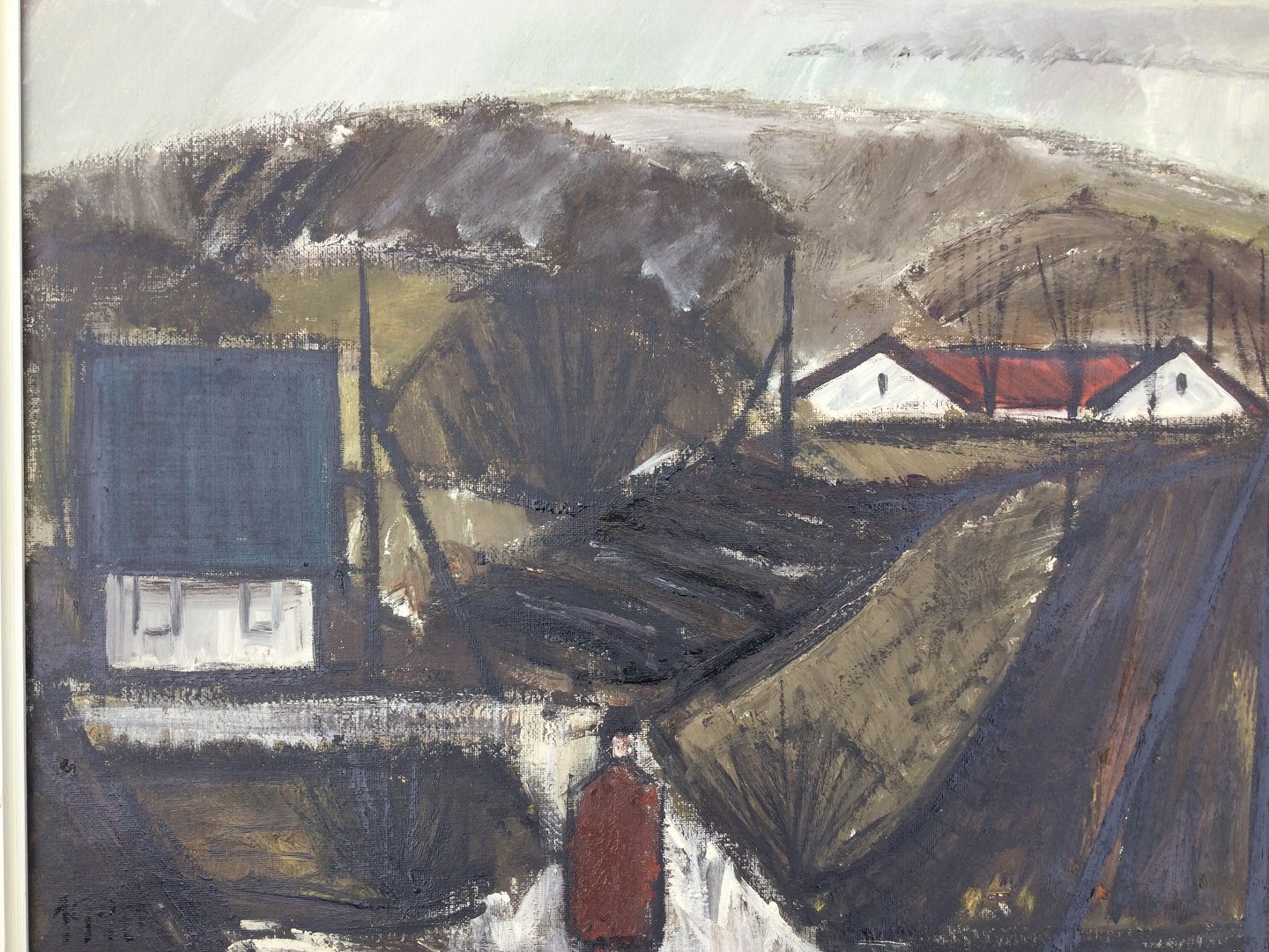 Maleri af Peder Brøndum Sørensen - Figur i landskab 1970.