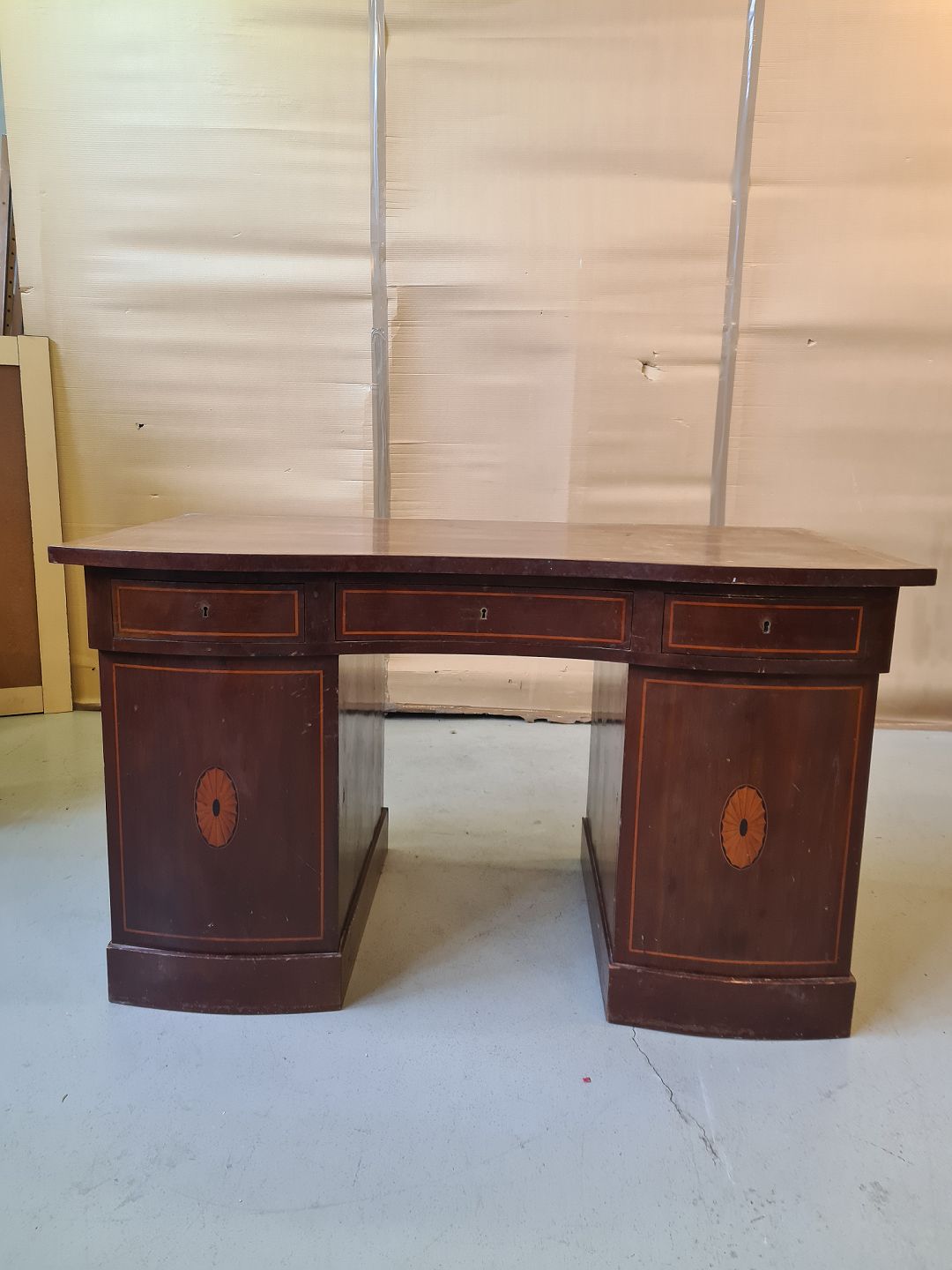 Skrivebord i fineret mahogni med intarsia, fra 1910erne.