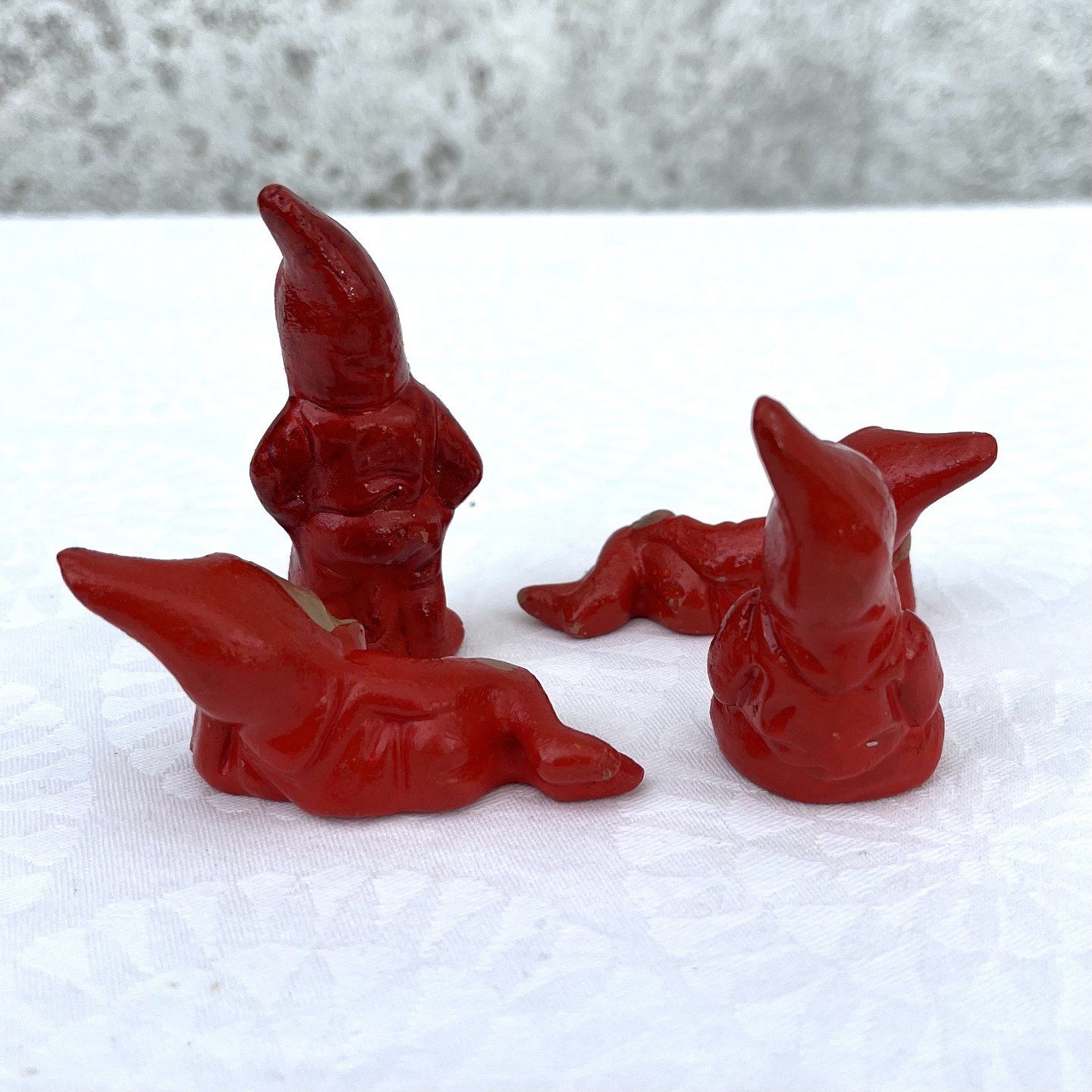 Charmerende retro ler nisser, Ca. 6cm høj, Sælges samlet *Pæn patineret*
