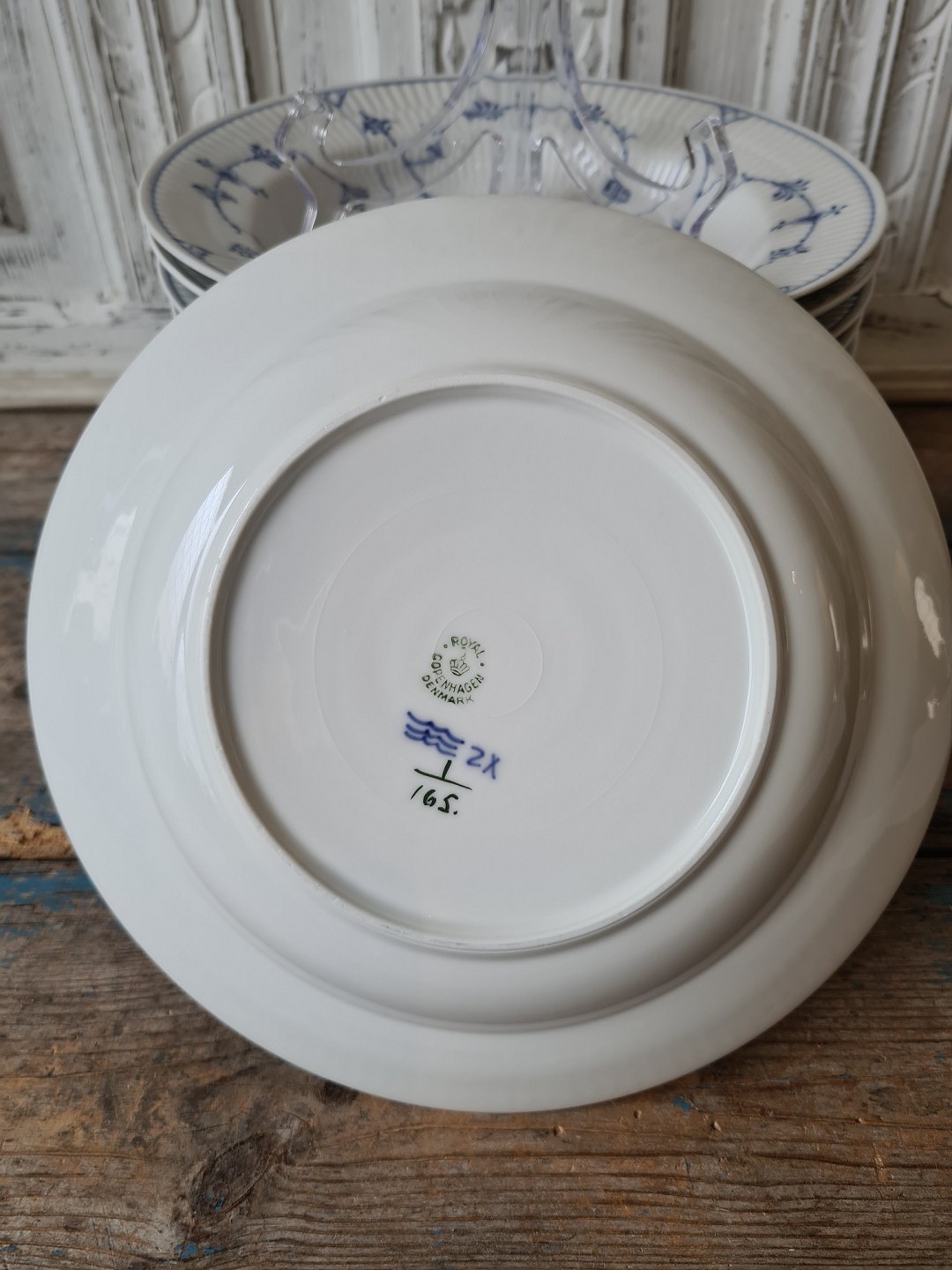 Royal Copenhagen Musselmalet riflet dyb tallerken no. 165 - 25 cm.