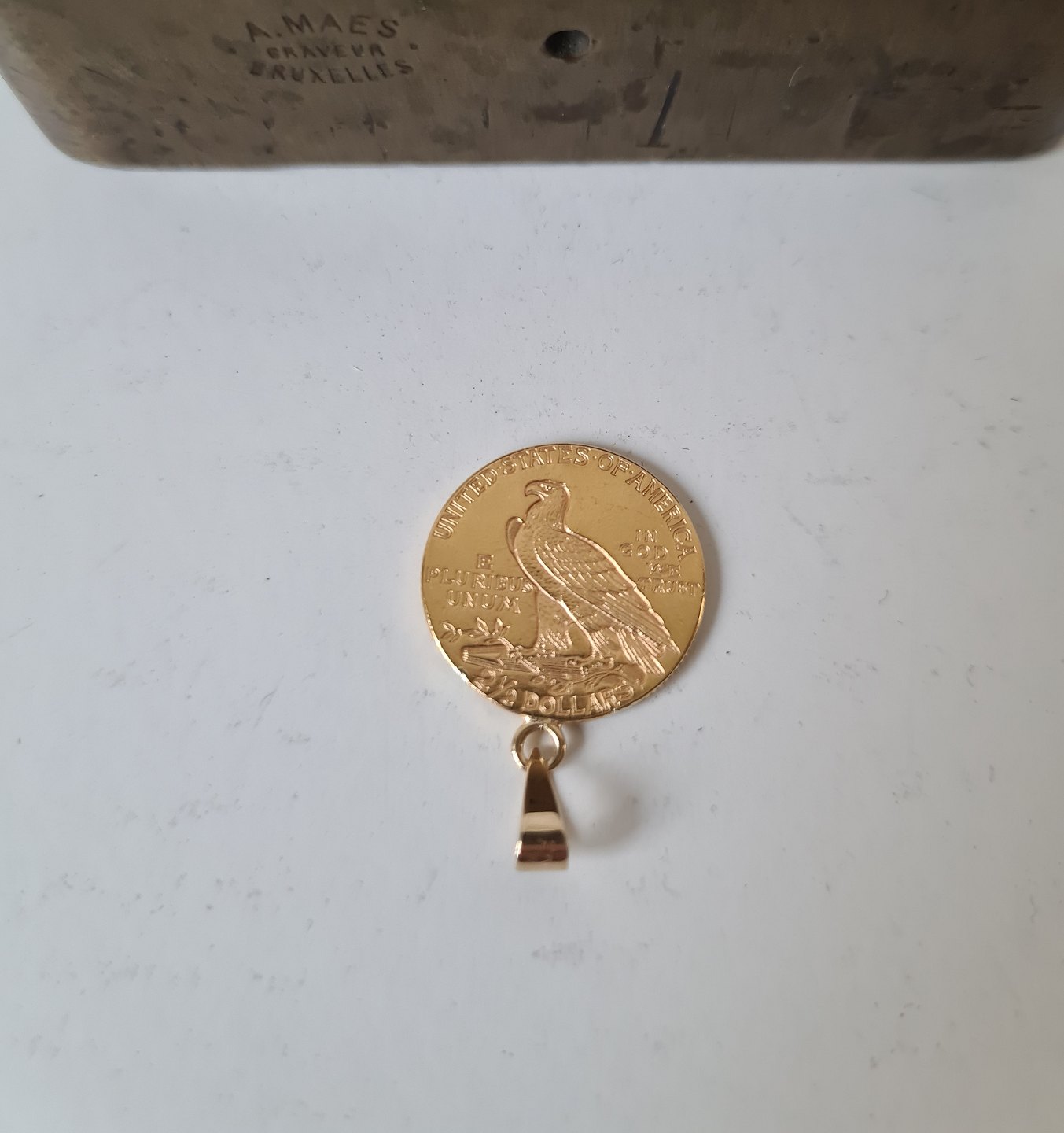 1915 Gold United States $2.5 Dollar Indian head quater Eagel mønt omlavet til vedhæng.