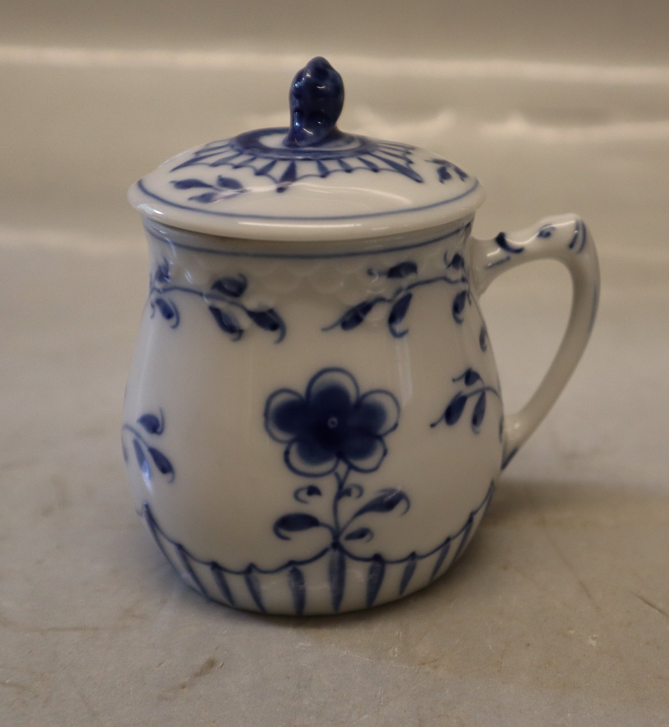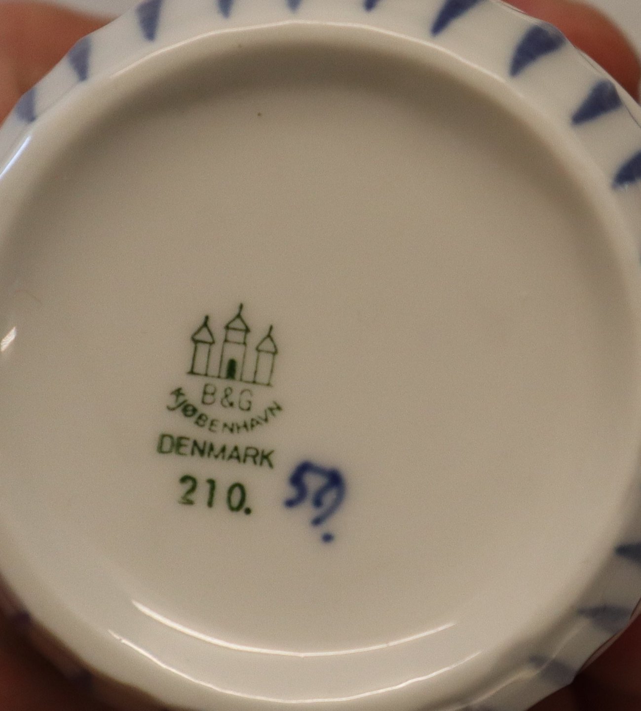 210 Large mustard jug 8.5 cm (450) Bing and Grondahl Blue Fluted with butterfly. Marked with the three Royal Towers of Copenhagen. Bing & Groendahl In mint and nice condition