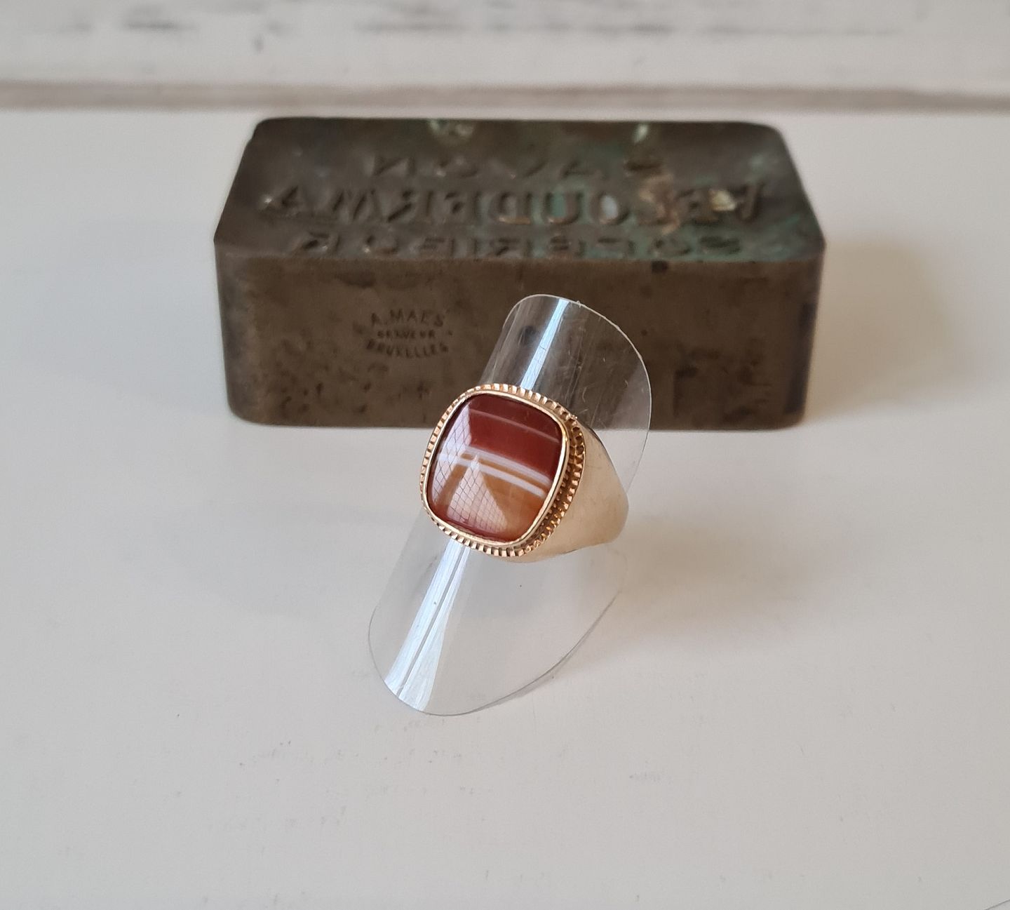 Vintage herrering i 14 kt guld med bånd agat